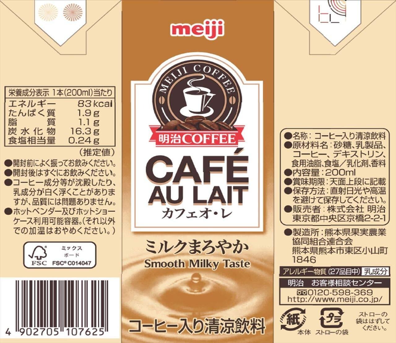 明治 液体 COFFEE カフェ・オ・レ 200ml [紙パック 飲料 ドリンク 飲み物 常温保存] ×24本