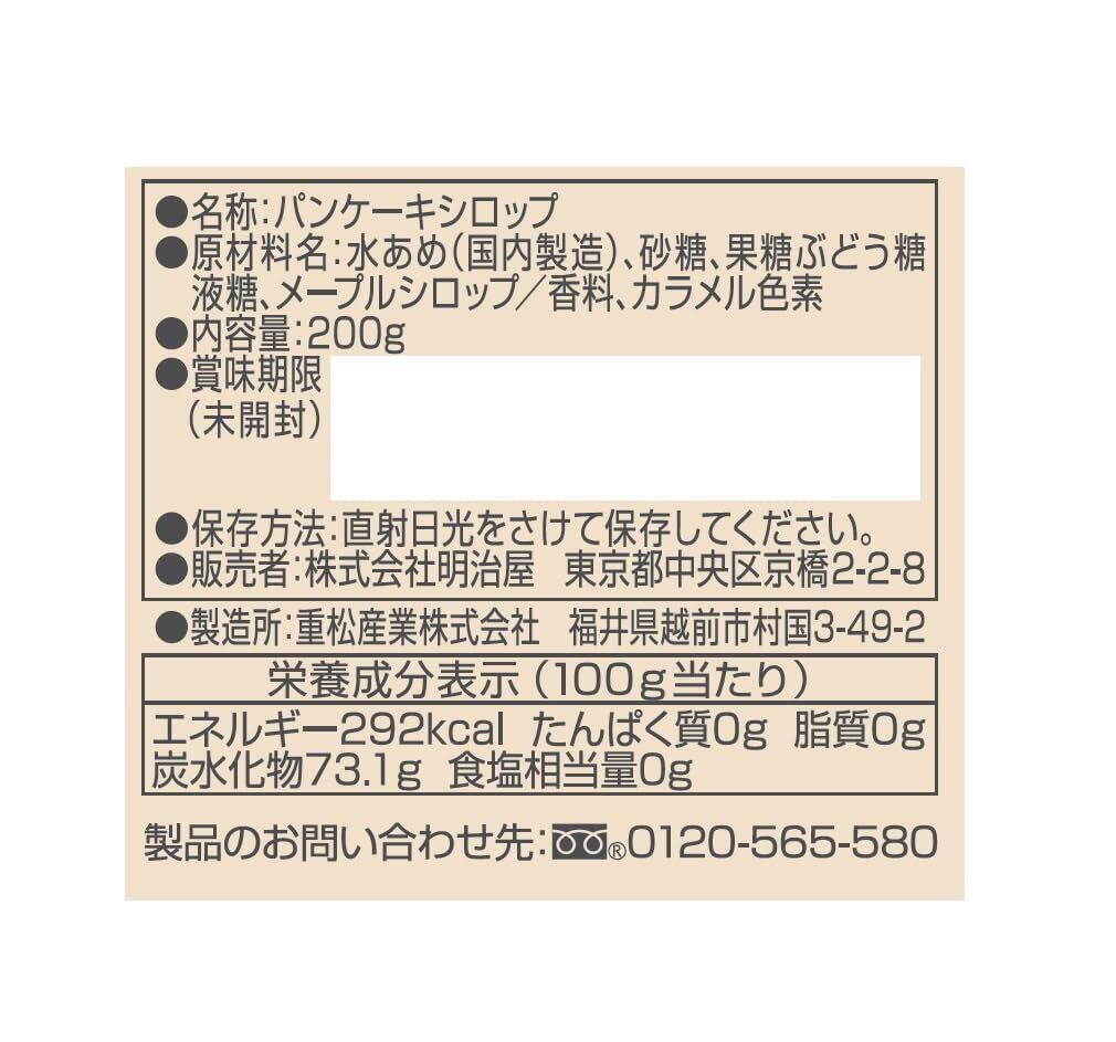 水あめ(国内製造)、砂糖、果糖ぶどう糖液糖、メープルシロップ/香料、カラメル色素