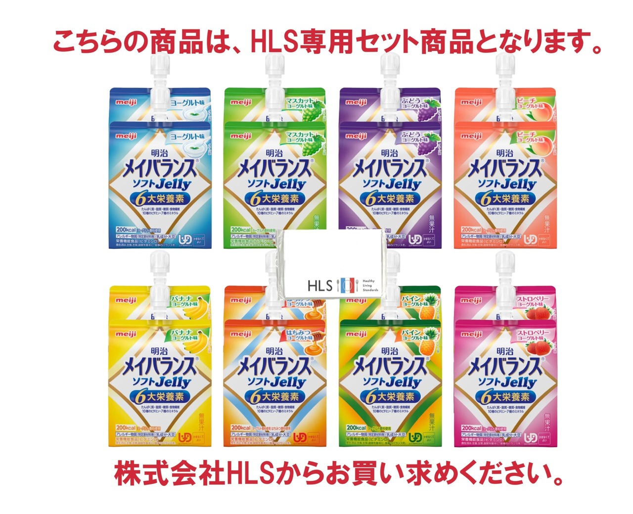 【HLS】 明治 メイバランス ソフトゼリー 8種 × 各2個 アソートセット HLSオリジナルポケットティッシュ付 ダンボール箱詰め