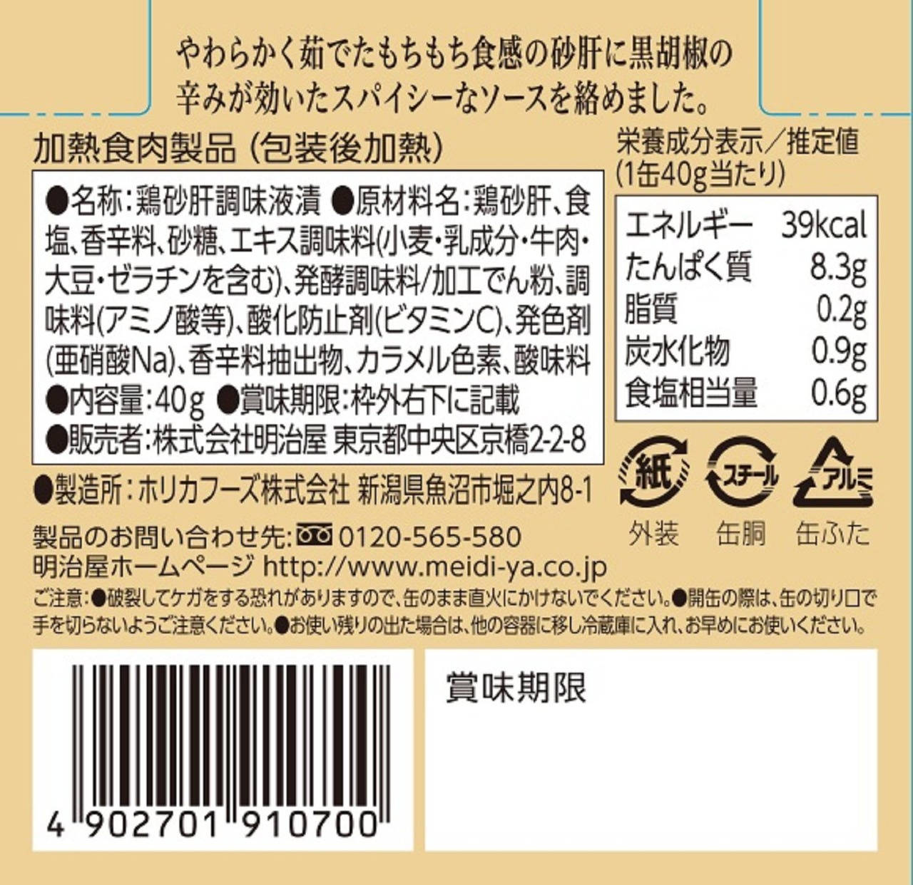 明治屋 おいしい缶詰 国産鶏砂肝の粗挽き黒胡椒味 40g×2個