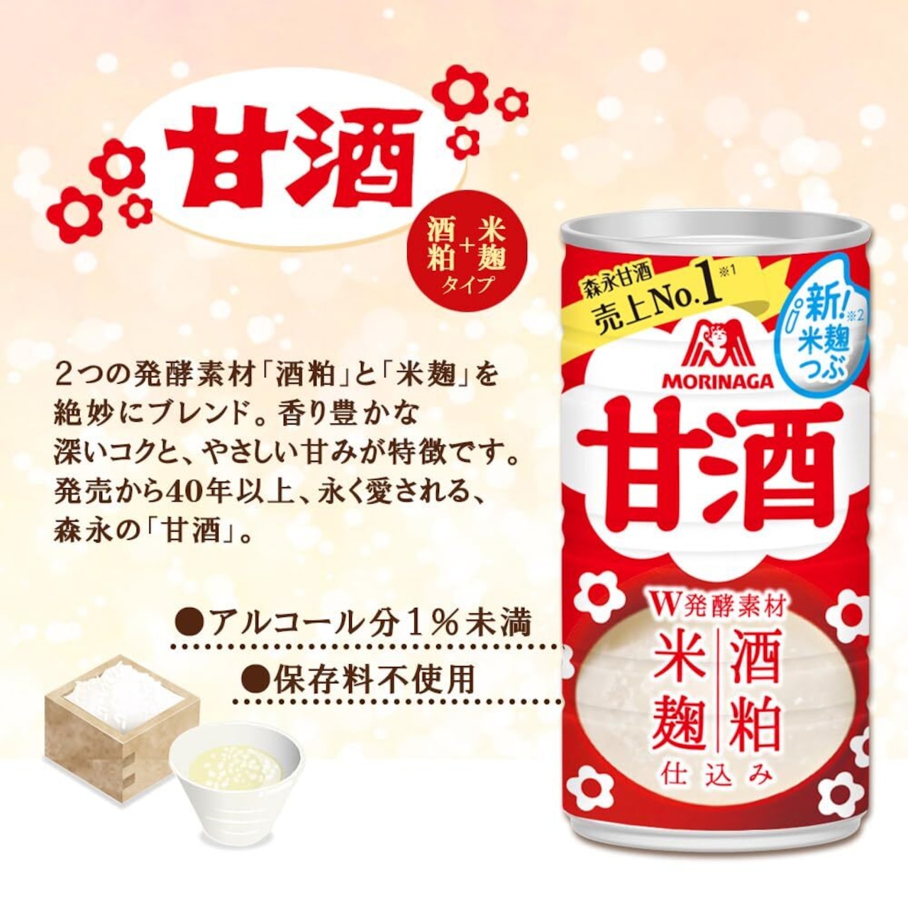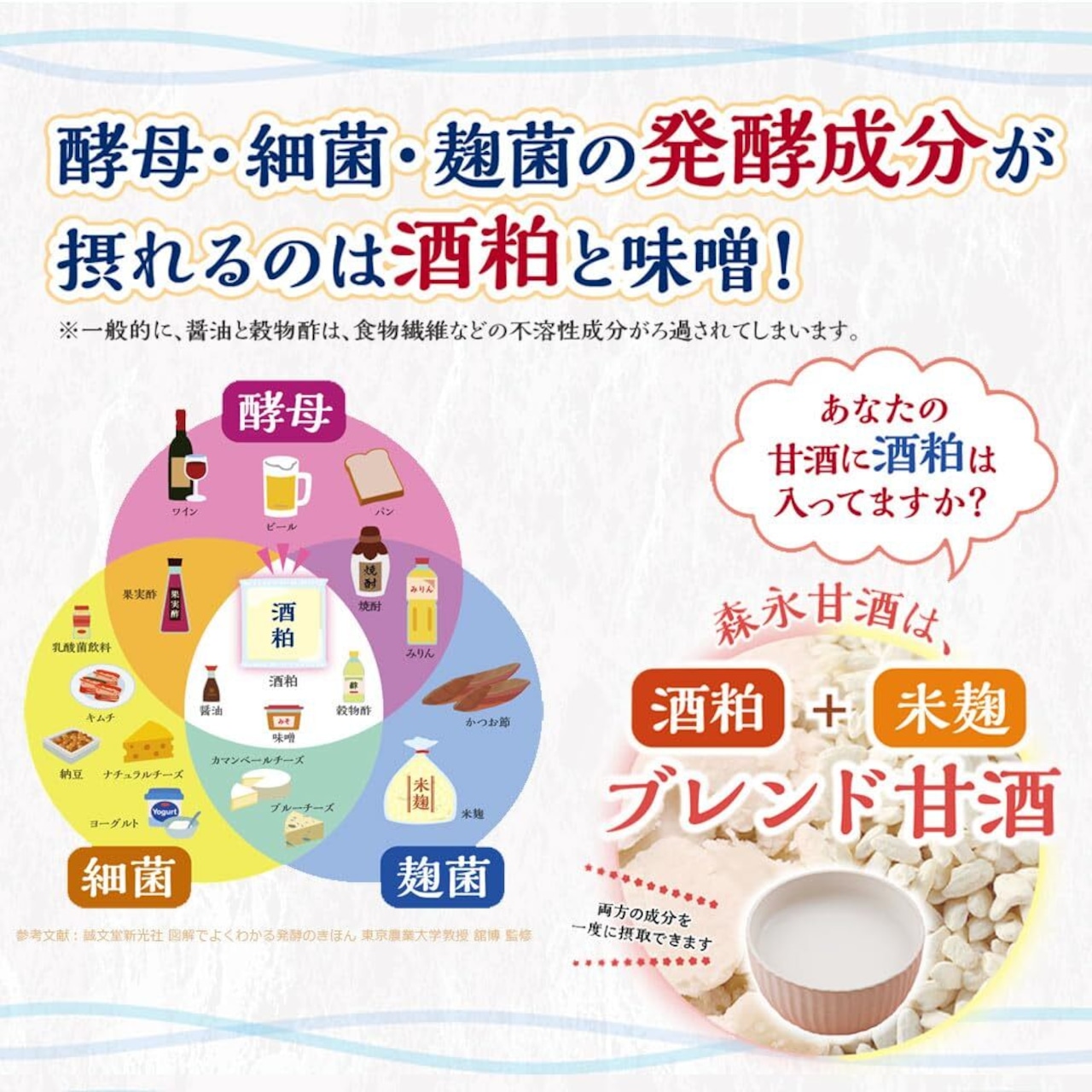 「酒粕」と「米麹」を使用した森永製菓の甘酒です。