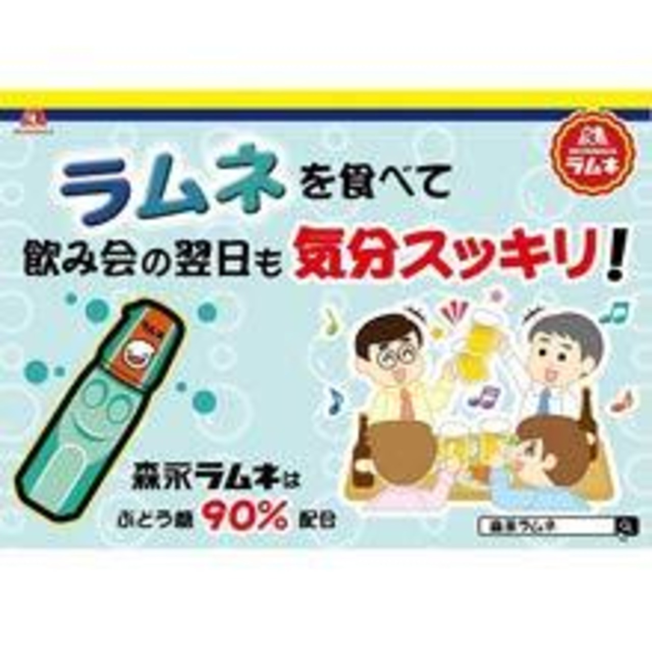森永ラムネで気分すっきり 「つい、飲み過ぎちゃったなぁ・・・」 そんな時にも森永ラムネをどうぞ。お酒の後の締めのラーメンもいいけれど、締めのラムネで翌日スッキリ。お酒の席には、ぜひお持ちくださいね。