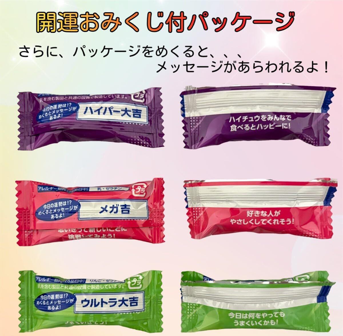 見て楽しい!食べて楽しい!可愛い個包装(開運おみくじパッケージ)で、各種イベント、家族や友達へのシェアにご活用ください。
