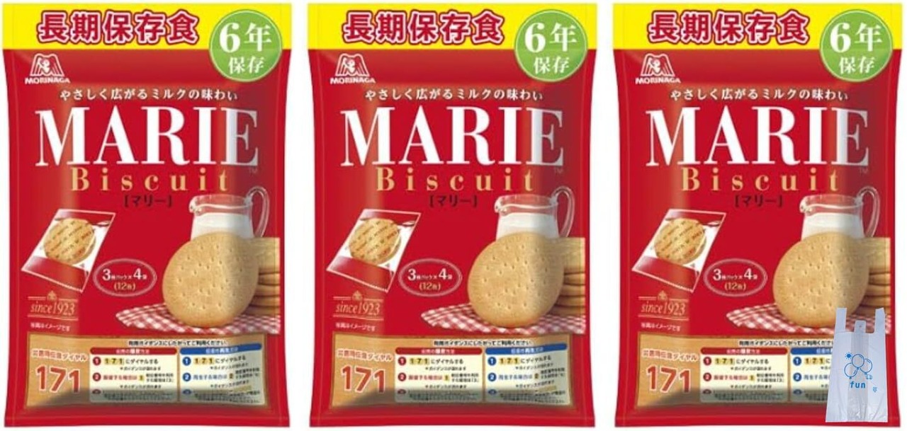 マリー ビスケット 3袋セット(1袋12枚入り 合計36枚)非常食 長期 保存食 6年保存オリジナルレジ袋付き 長期保存 森永製菓