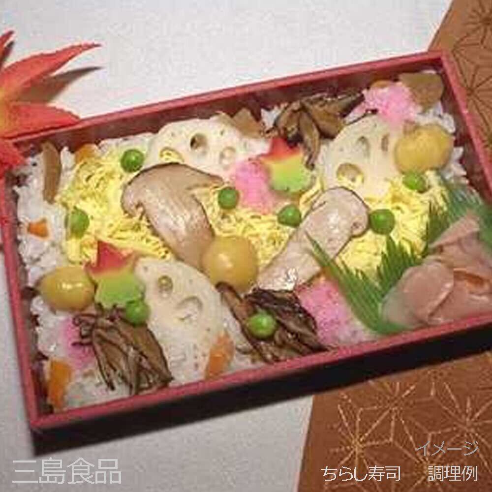 6種類の具材をバランスよく配合した、ちらしずしの素です。すし飯に混ぜるだけで、手軽に具だくさんのちらしずしが出来上がります。年間を通してのメニューにご利用いただけます。また、トッピングにより季節感を演出できます。すし飯6~7kgに本品1袋をむらなく混ぜ合わせてください。(アレルゲンは、日本で表示の対象となる28品目について記載しています。)