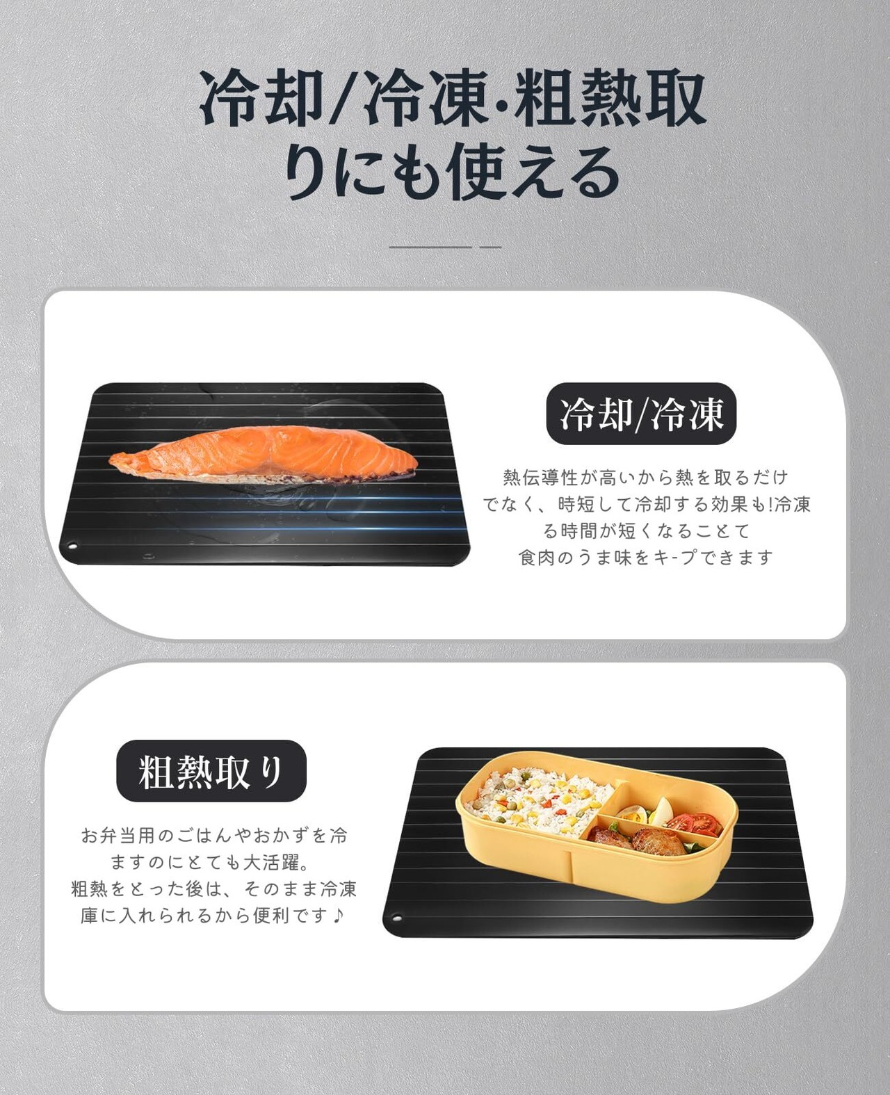 【解凍効率が高い】航空用アルミ合金材質を採用しており、熱伝導性が強く、解凍時間を 8 分の 1 に短縮することができます。冷凍した食材を素早く加工可能な状態に戻すことができます。