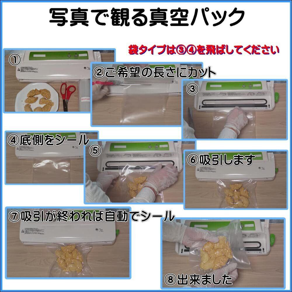 多くの真空パック器でご使用頂ける、内側がエンボス加工(ザラザラした加工)された袋タイプの商品です。 ※フードシールド/ダッキー/HOPPOなどのノズル式や業務用チャンバー式では使用できません。 ※お手持ちの真空パック器でご使用できるかご不明な時は、お気軽にお問い合わせ下さい。