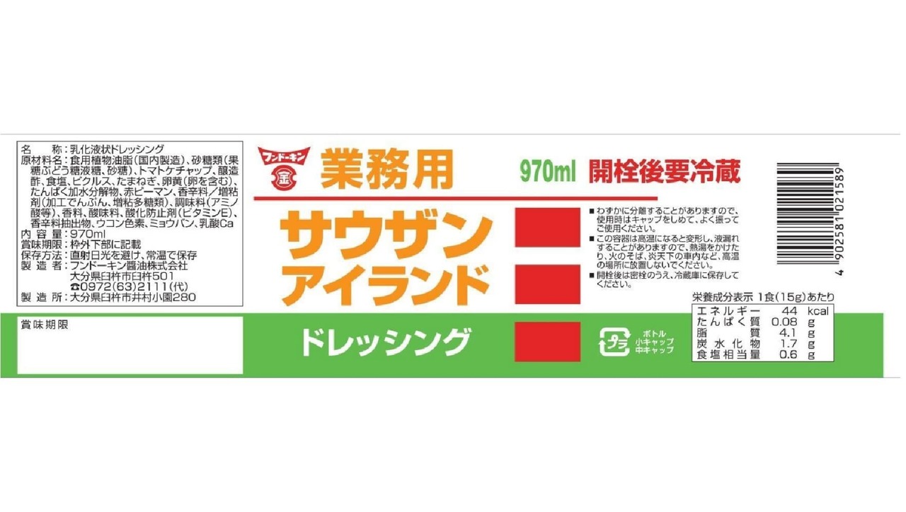 フンドーキン 業務用サウザンアイランドドレッシング 970ml
