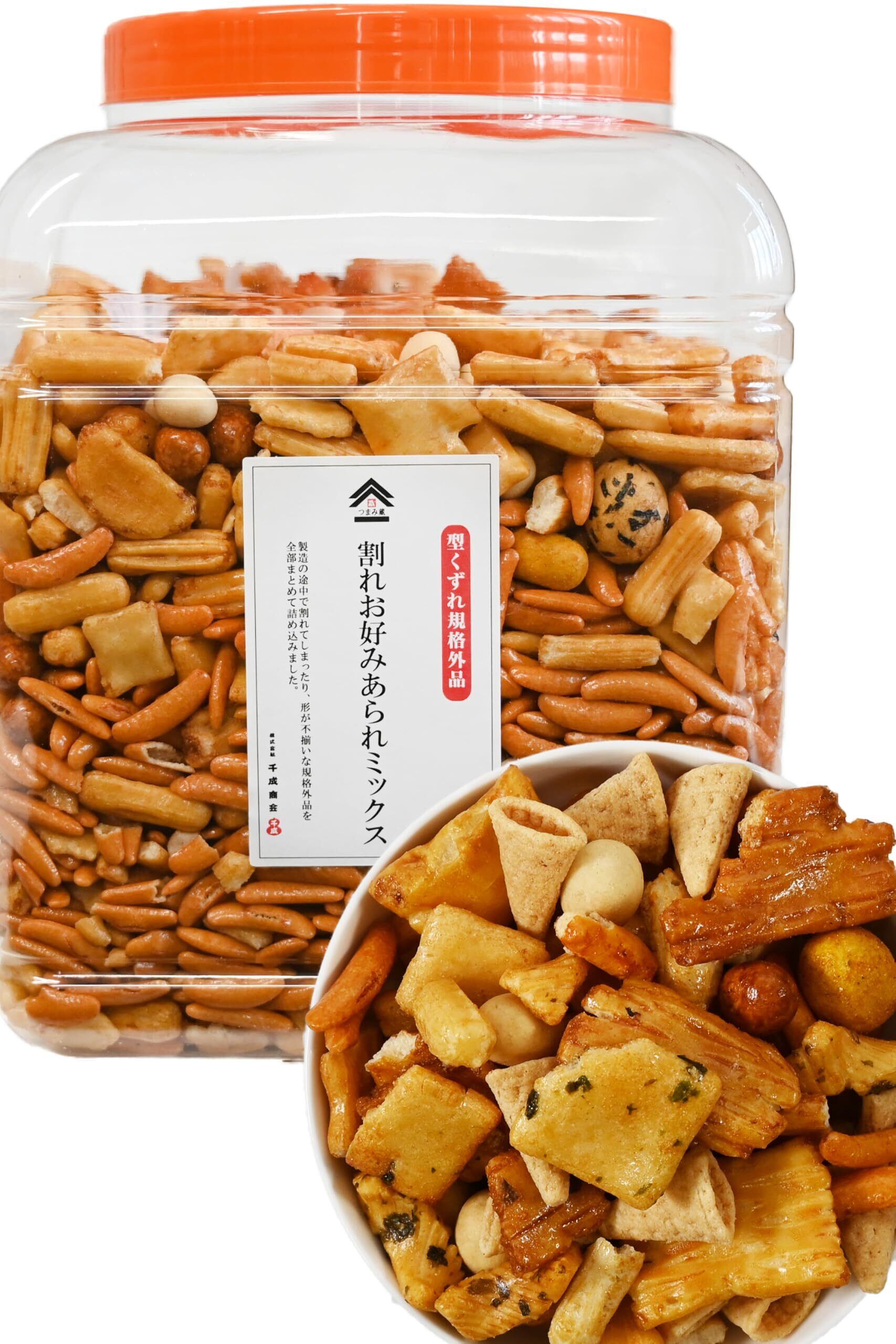 【いろんな味がつまった一箱!】柿の種、あられや豆菓子、おかき、おせんべいなど数種類をミックスした業務用ポットです。様々なお菓子を飽きずに楽しむことができます。訳ありの割れたものも入っていますが、味はそのままでおいしく醤油や塩が程よく効いた味となっております!