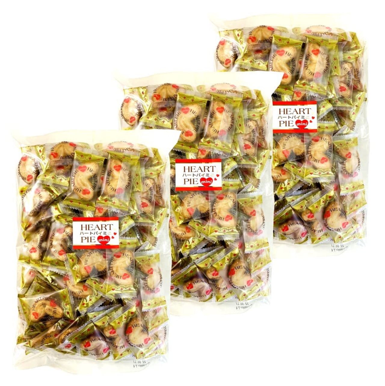 かわいいハート型のミニパイです。食べやすいように1つずつ個包装されています。1袋300g入りの中に個包装、80個程度が入っています。