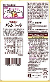 【バームロール】 ソフトなやさしい味わい ミニロールケーキをまろやかなホワイトクリームで包み込みました。ソフトなくち当りとやさしい味わいをお楽しみください。 原材料名/添加物名 小麦粉(国内製造)、マーガリン、砂糖、液全卵、植物油脂、ぶどう糖、脱脂粉乳、還元水飴、乳糖、異性化液糖、ホエイパウダー(乳成分を含む)、洋酒/ソルビトール、酒精、カゼインナトリウム(乳由来)、乳化剤(大豆由来)、膨脹剤、香料、着色料(カロテン)