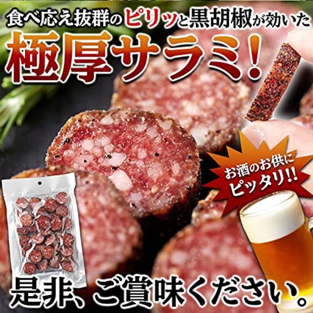 【お酒のお供にぴったり!】ピリッと黒胡椒が効いた極厚サラミ。ビールやワインなどのお酒のお供におすすめです。