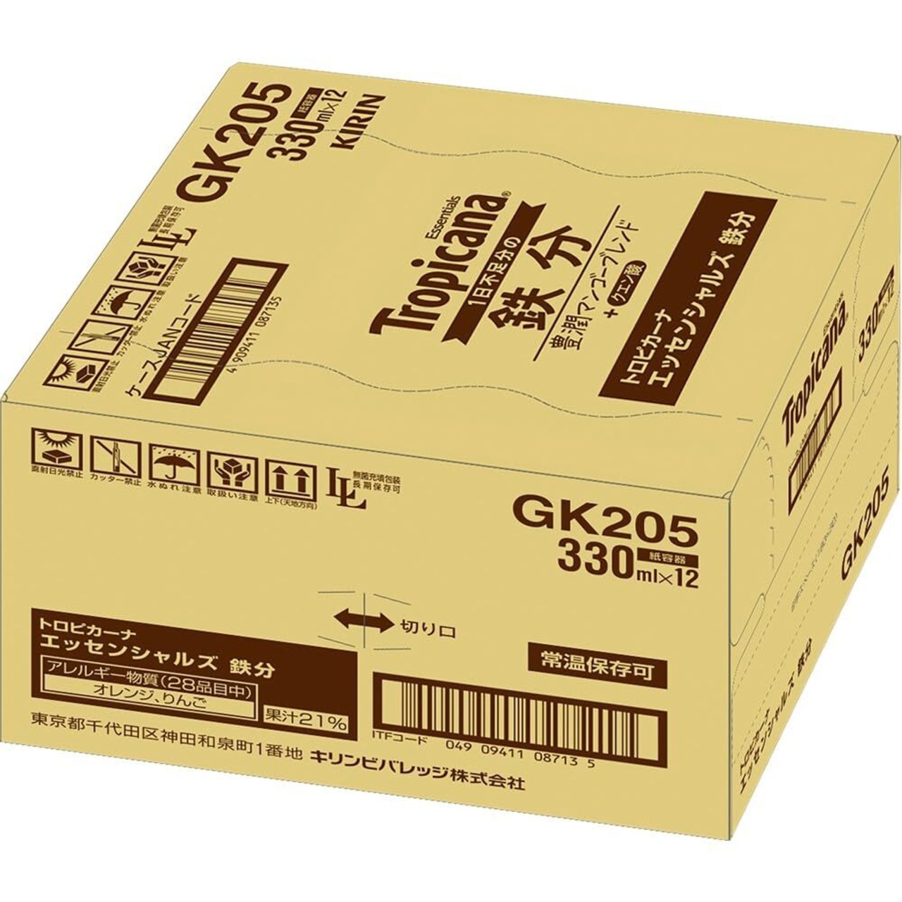 キリン トロピカーナ エッセンシャルズ 鉄分 330ml 12本 紙 パック 1日不足分 クエン酸 果汁飲料 ジュース