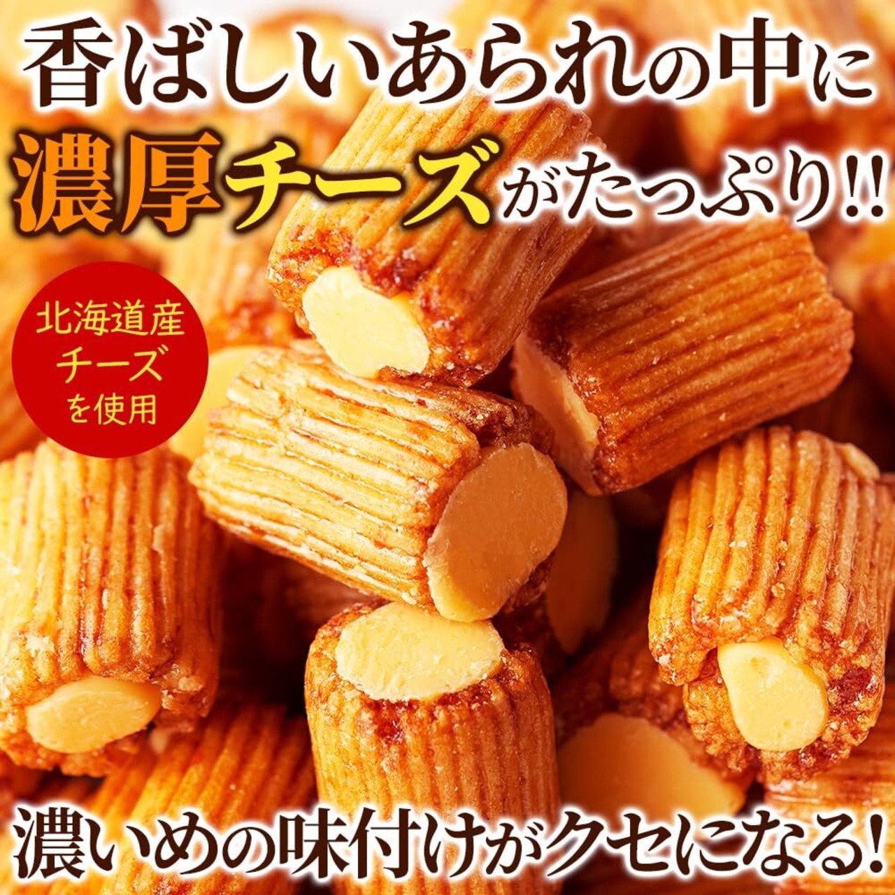 【北海道産チーズを使用!!】3種の北海道産チーズをブレンド!!香ばしいあられの中に濃厚チーズがたっぷり