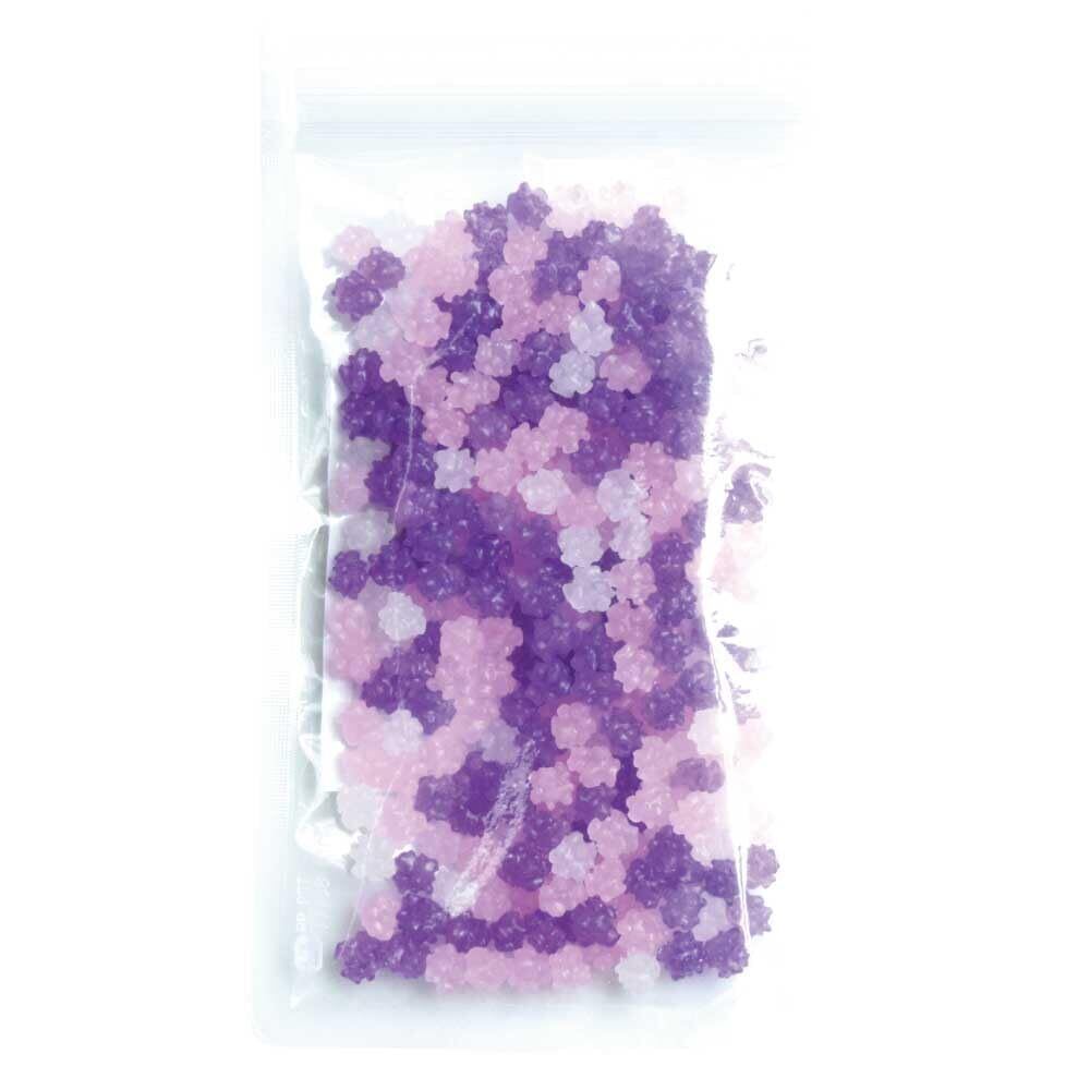 お花のこんぺいとう ふじ お花のイメージに合わせた配色で、お色によってフルーツのフレーバーが入っております。 お色によって味が異なります。(淡ピンク:ピーチ)(淡紫:グレープ)(白:グレープフルーツ)