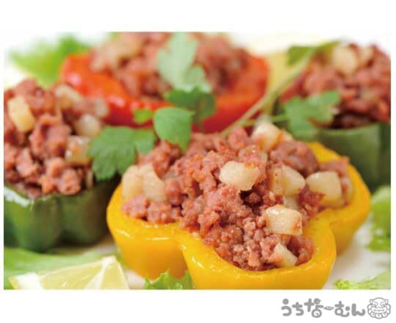 牛肉に味付けをし、ポテトとブレンドした商品です。 沖縄では、ゴーヤー・豆腐などのちゃんぷるーをはじめ、カレー、チャーハン、お味噌汁、炒め物、和え物等、幅広く利用されています。 季節の野菜と合わせて手軽かつ自由に調理できる万能食材なので、使い方次第でお料理のレパートリーがぐっと広がります。