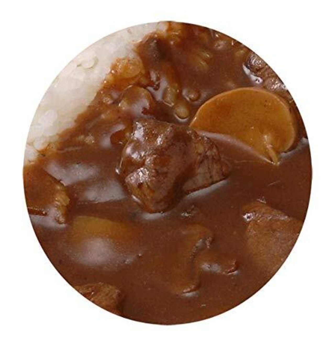 原材料:牛肉、玉ねぎ、小麦粉、マッシュルーム、食用油脂(牛脂、豚脂)、砂糖、食塩、ソテー・ド・オニオン、チャツネ、カレー粉、バター、リンゴペースト、オニオンパウダー、ミルポワ、ビーフエキス、赤ワイン、醤油/増粘剤(加工デンプン)、カラメル色素、調味料(アミノ酸等)、酸味料、香料、(一部に小麦・乳成分・牛肉・大豆・豚肉・りんごを含む)
