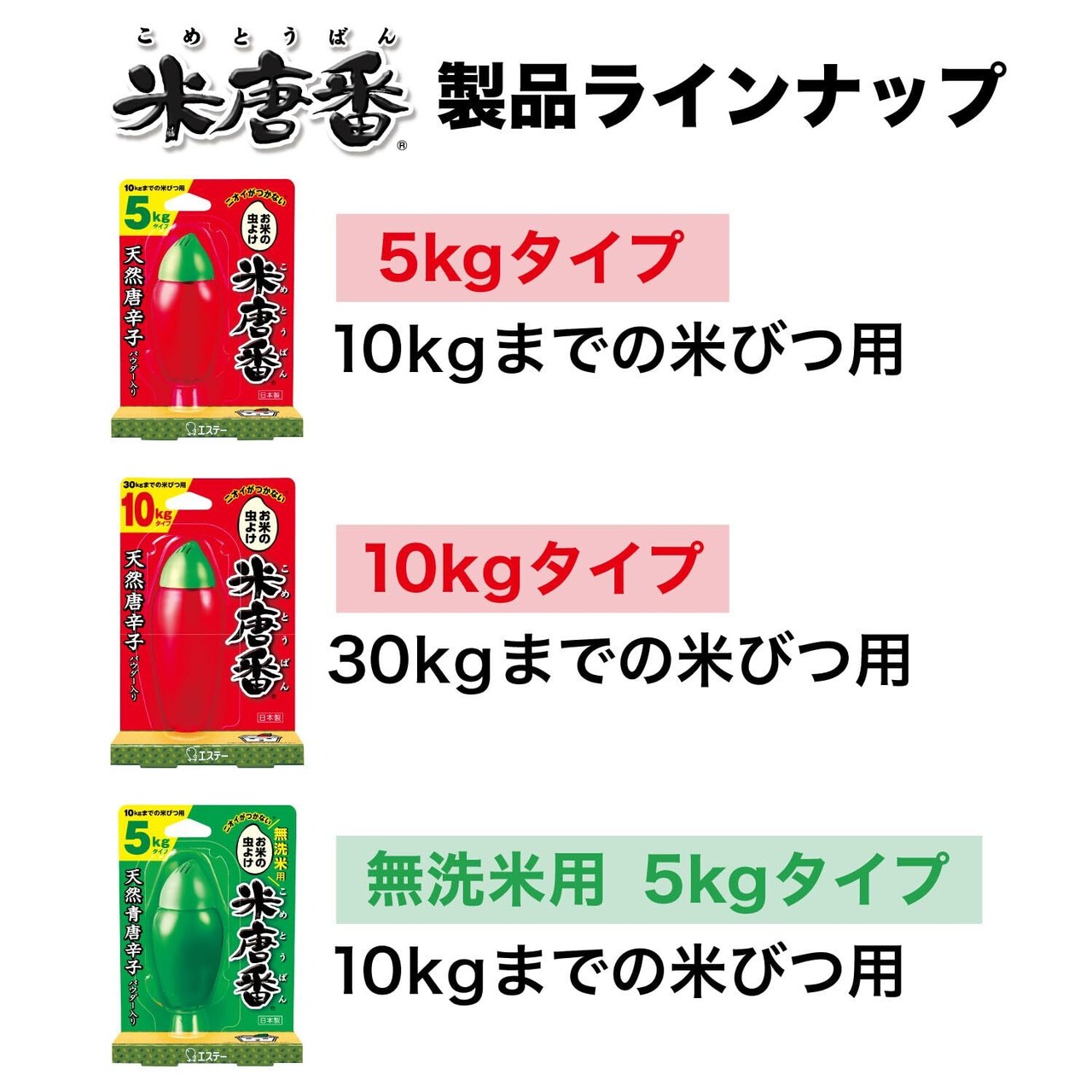 【お米の虫よけ 米唐番】天然唐辛子と酒精(発酵アルコール)、クミンアルデヒド(香辛料由来成分)入りの唐辛子ゼリーがお米を虫から守ります。
