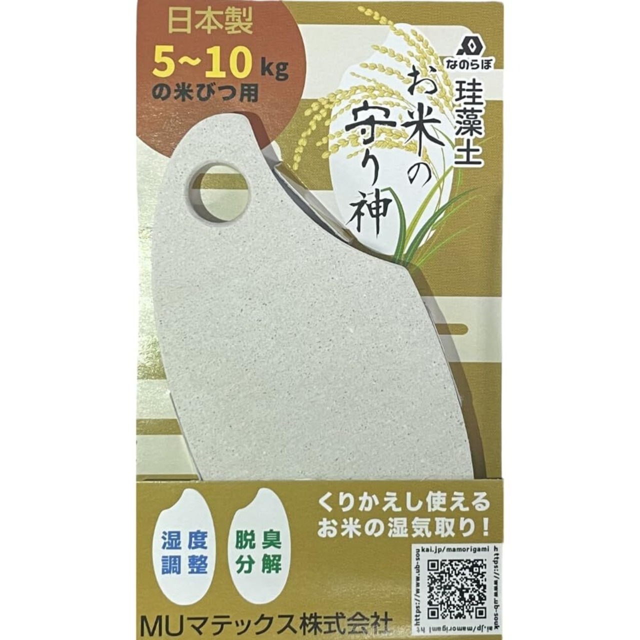 お米の保管に新提案!! 珪藻土でご飯の美味しさを見守り続ける! 「お米の守り神」はMUマテックスの技術で、本来の珪藻土の吸放湿性能をさらに高め、脱臭能力を飛躍的に向上させた調湿建材「やさしい壁」の原材料使用して生まれました。 高温・高湿度で発生するお米の匂いを脱臭・分解をすることで害虫の侵入を軽減し、また湿度コントロールでお米の水分の変化による、乾燥やカビからお米を守ります。