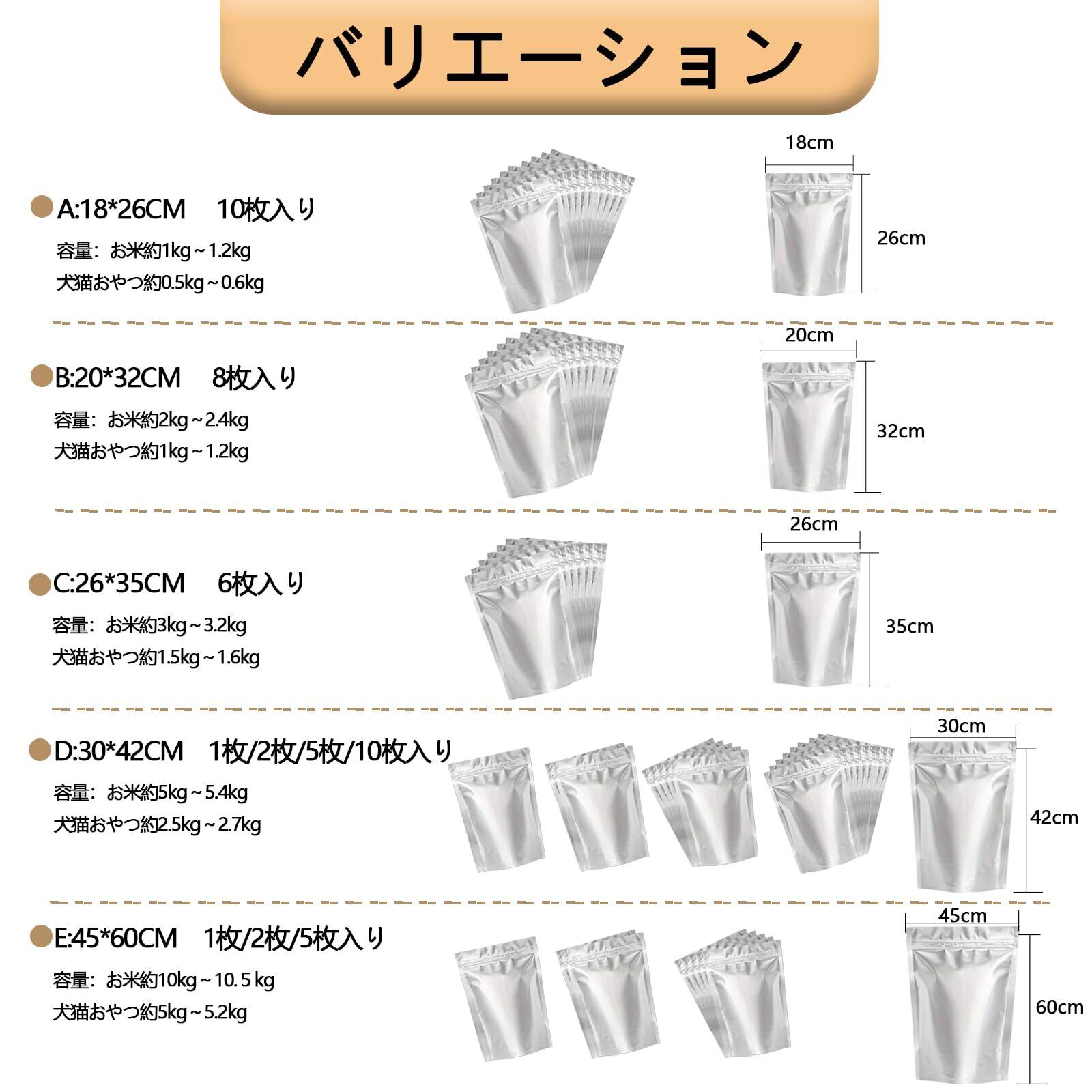 【さまざまな用途】この米保存袋は、お米だけでなく、ペットのおやつや雑穀、コーヒー豆、紅茶、海苔、昆布、ナッツ、種子、乾燥野菜など、さまざまな用途に適しています。ご家庭で使用するだけでなく、お米の販売店などでも活用できる便利な製品です。さらに、再利用可能なので経済的です。