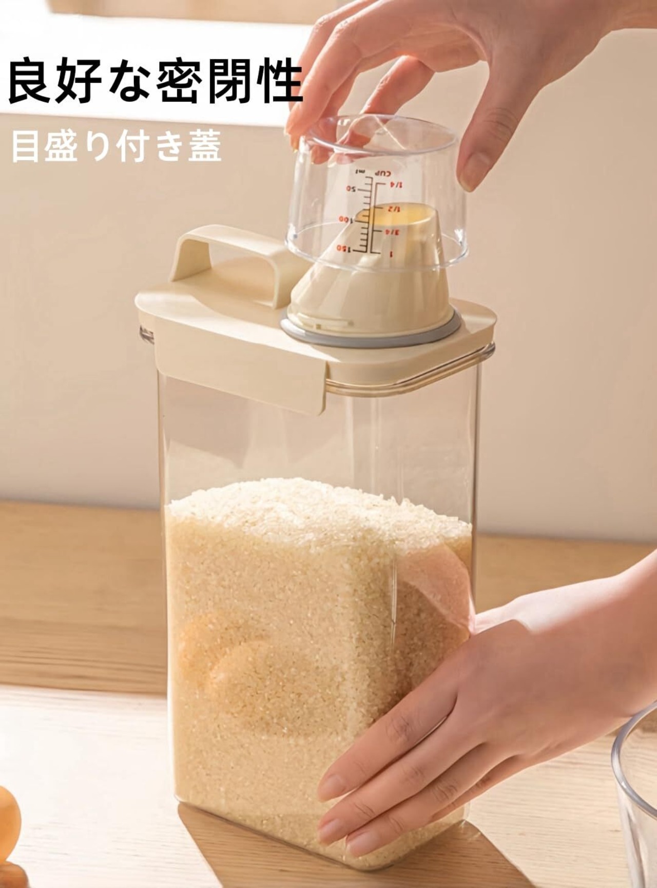 【容積】こめびつ容積:2300ml,計量カップ:150ml。約2kgから2.4kgの米を入れることができます。