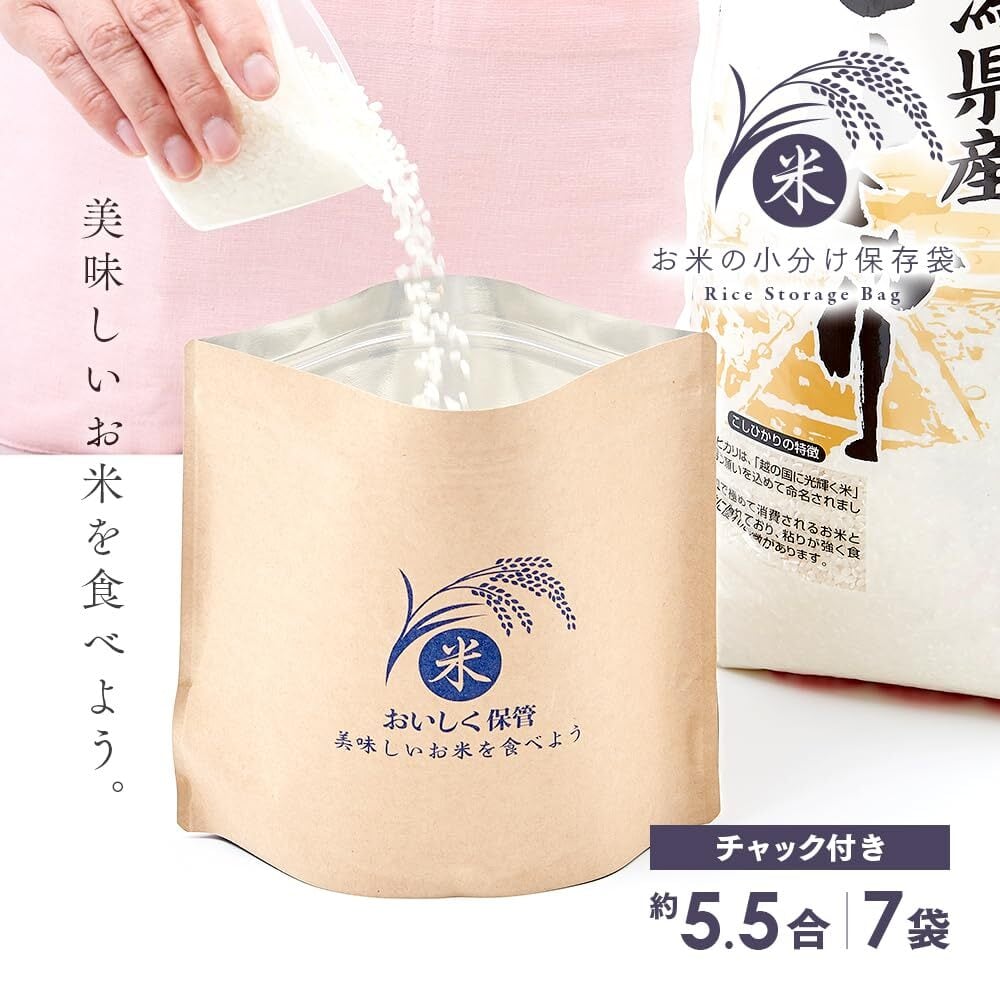 アイメディア(Aimedia) お米保存袋 米袋 7袋入 日本製 小分け袋 米保存ケース チャック付き 保存容器 冷蔵庫保存 米びつ 密閉 お米の小分け保存袋