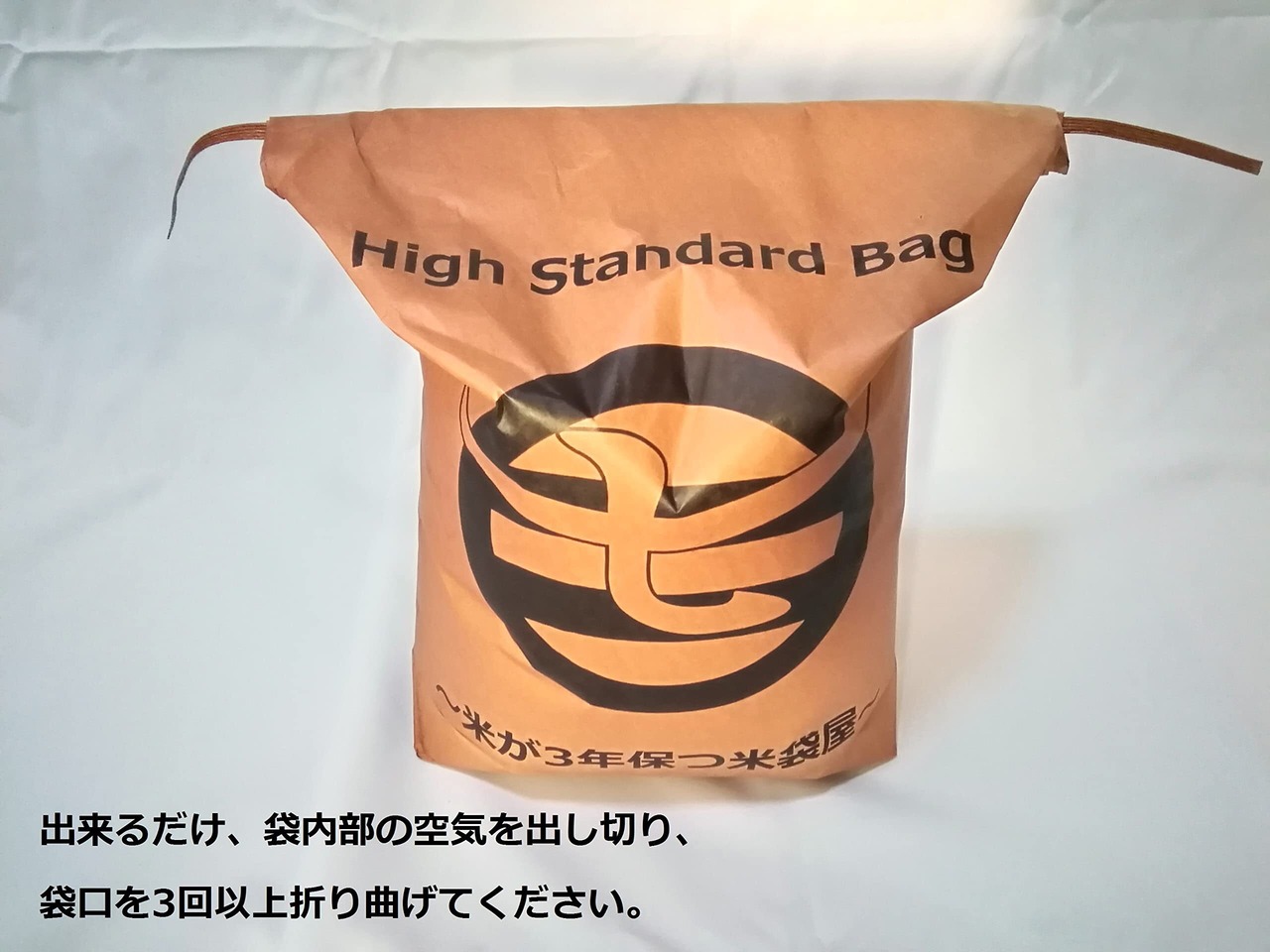 米が3年保つ米袋屋 ハイスタンダードバッグ 10㎏用×3枚(柿渋撥水米袋 )■玄米常温保存において3年2ヵ月保つ公的データを実証しております。 ■お米、玄米を購入時の袋から取り出し、当社袋に直接移し替えてください。袋口を締める際、袋内部の空気を出来るだけ抜いた後、3回以上折りたたみ、しっかりとヒモを結んでください。 ■中身が入っている状態で持ち上げる際は、ヒモを持たず、必ず本体を両手で持ってください。ヒモ破れの原因となります。 ■防虫・防カビ・防腐・防水・強化に優れた日本古来の伝統技術である「柿渋」を特殊加工した商品となります。電機冷蔵不要で、常温での保存が可能です。使用後は、空袋にして1日天日干しすれば繰り返し利用可能な経済的にも大変お得です。 ■近年では、備蓄用や贈答用として多くの皆様にご利用頂いております。※2020年よりデザインが一新しております。効果は以前同様です。ご安心ください。 ■こちらの商品は、1枚1枚丁寧に手仕上げ製法しておりますが、色むらや、液ダレ、まだら模様等製法上どうしても外観に発生してしまいます。また袋内部底にも、柿渋液が染みこみんでいる場合がございすが、ご利用していただく上では問題ございません。品質は基準をクリアしているものです。 神経質な方は、手仕上げ製法の柿渋ハッスイ米袋のご購入を控えていただくか、内部に加工を施した30㎏用サイズをお求めください。 ■【注意】柿渋撥水米袋の各種効果、実証は、お米の品質をするものではありません。お米の保管場所、お米の状態等で、害虫やカビの発生もあり得ます。取り扱いには十分ご注意ください。
