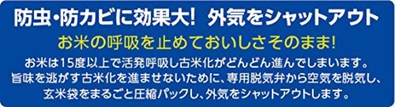 新米時の水分を維持。水分蒸気を防ぐ。お米の風味・おいしさを保存。外気をシャットアウトするので、虫やカビが付かず、安全清潔に保管できます。