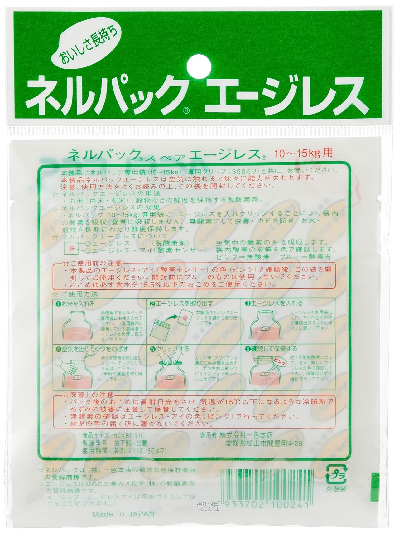 一色本店 穀物用鮮度保持剤(ネルパックシリーズ10kg・15kg用) エージレス 2個入り