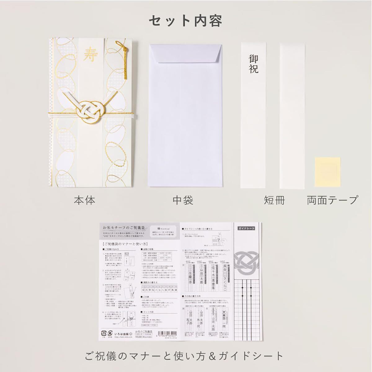 【セット内容】・本体 ×1 ・中袋 ×1 ・短冊 ×3(寿/御祝/無地) ・短冊用の両面テープ×1シート(4枚付き)