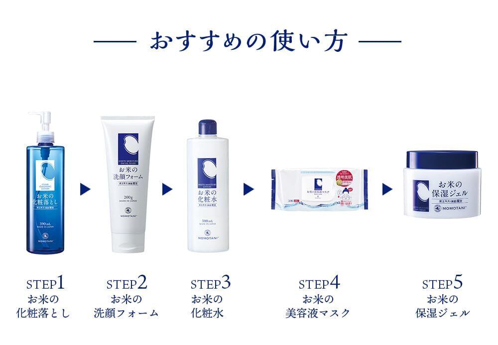 【お米のスキンケア】お米のスキンケアでふっくら炊立てお米肌に。お米にはタンパク質、アミノ酸、ミネラル、ビタミンなど、美肌に役立つ成分がたっぷり入っており、お肌の健康をサポートいたします。