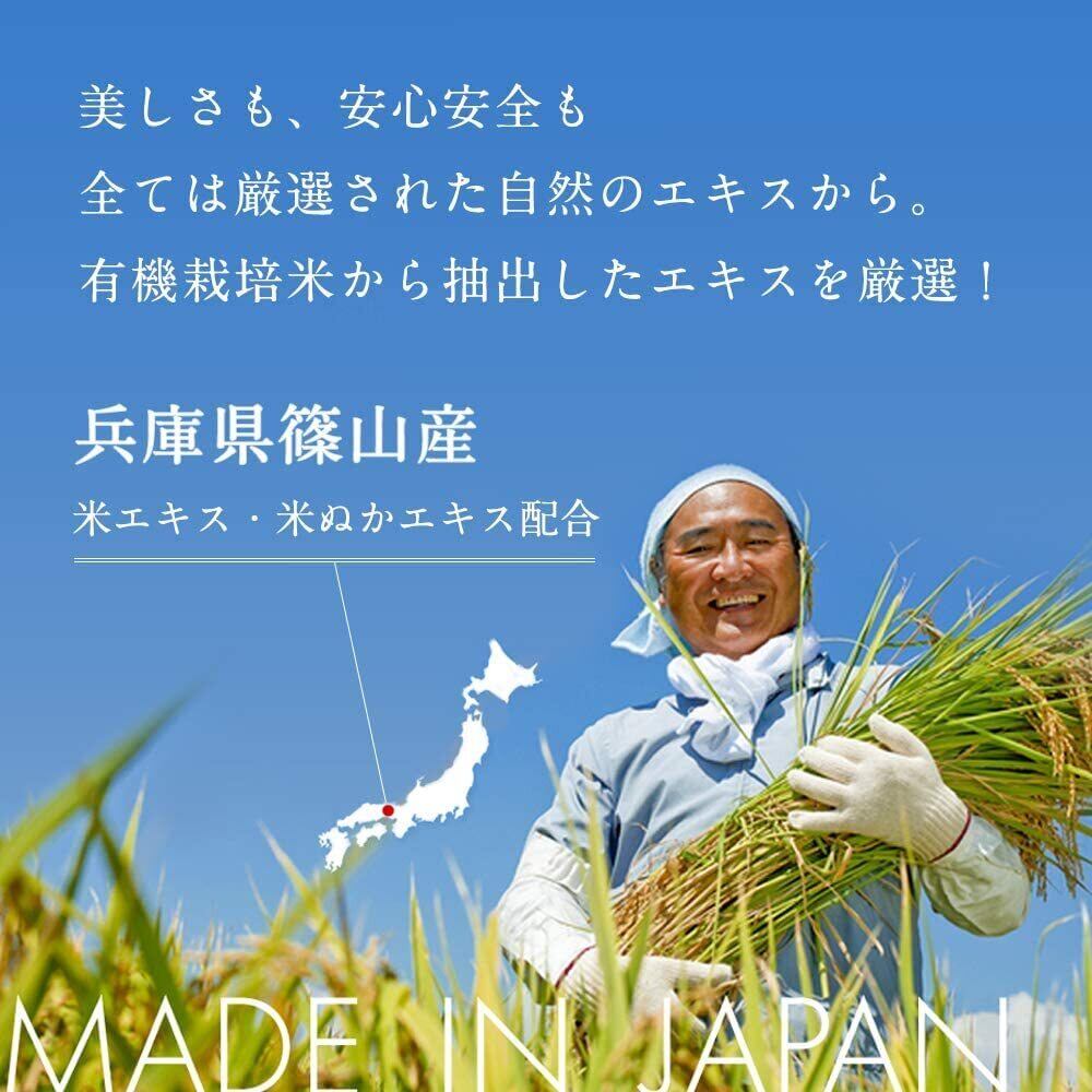 【厳選した兵庫県篠山産の米エキス(保湿)米ぬかエキス(保湿)配合】産地が明らかな自然のエキスを配合。うるおいを守りながら、透明感のあるお肌に導きます。
