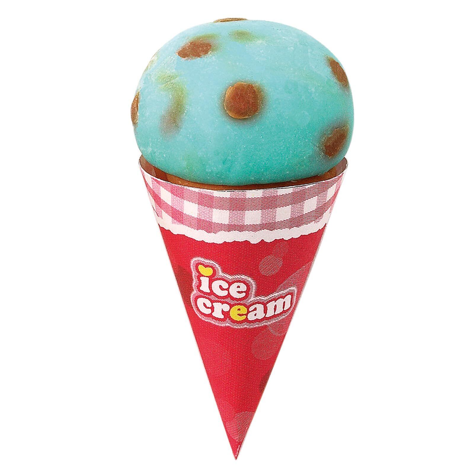こむぎねんど4色(白・青・赤・黄)各30g、保存袋、紙製ねんど板(両面)、コーン型、アイス 型、ねんどヘラ、アイス棒、押しだし器、コーンスリーブ、ディスプレイ