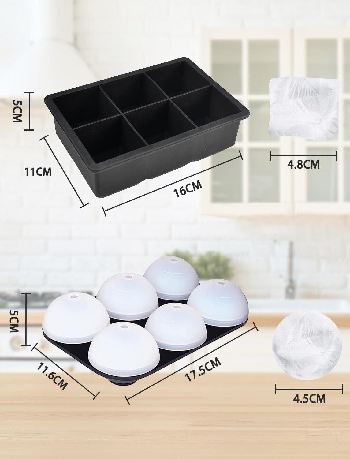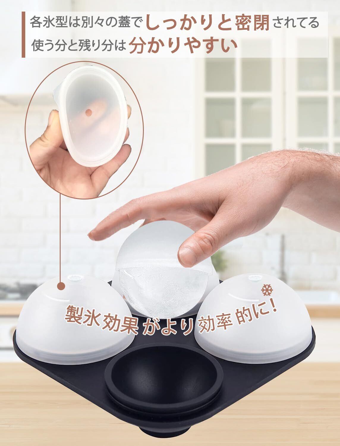AKINOYAMA 製氷皿 丸氷 アイスボールメーカー 大きい氷 直径4.5cm 溶けにくい 氷 水漏れなし 食洗機対応 ロックアイス ビール ウイスキー ハイボール アイスクリーム ジュース カルピス シリコーン製 氷型 (セット)