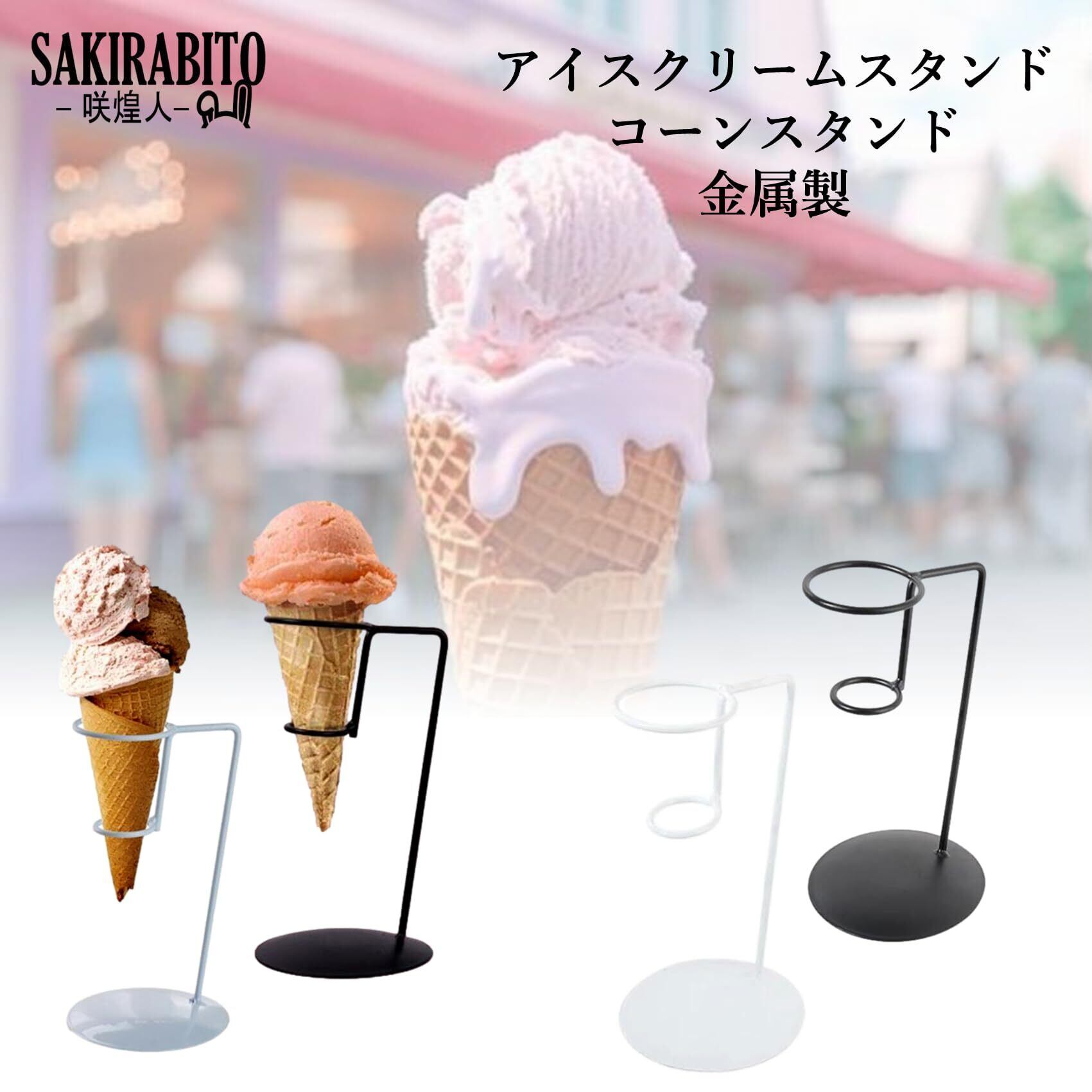 SAKIRABITO アイスクリームスタンド ソフトクリームスタンド コーンスタンド 金属製 展示用 ケーキスタンド (ホワイト2個セット)