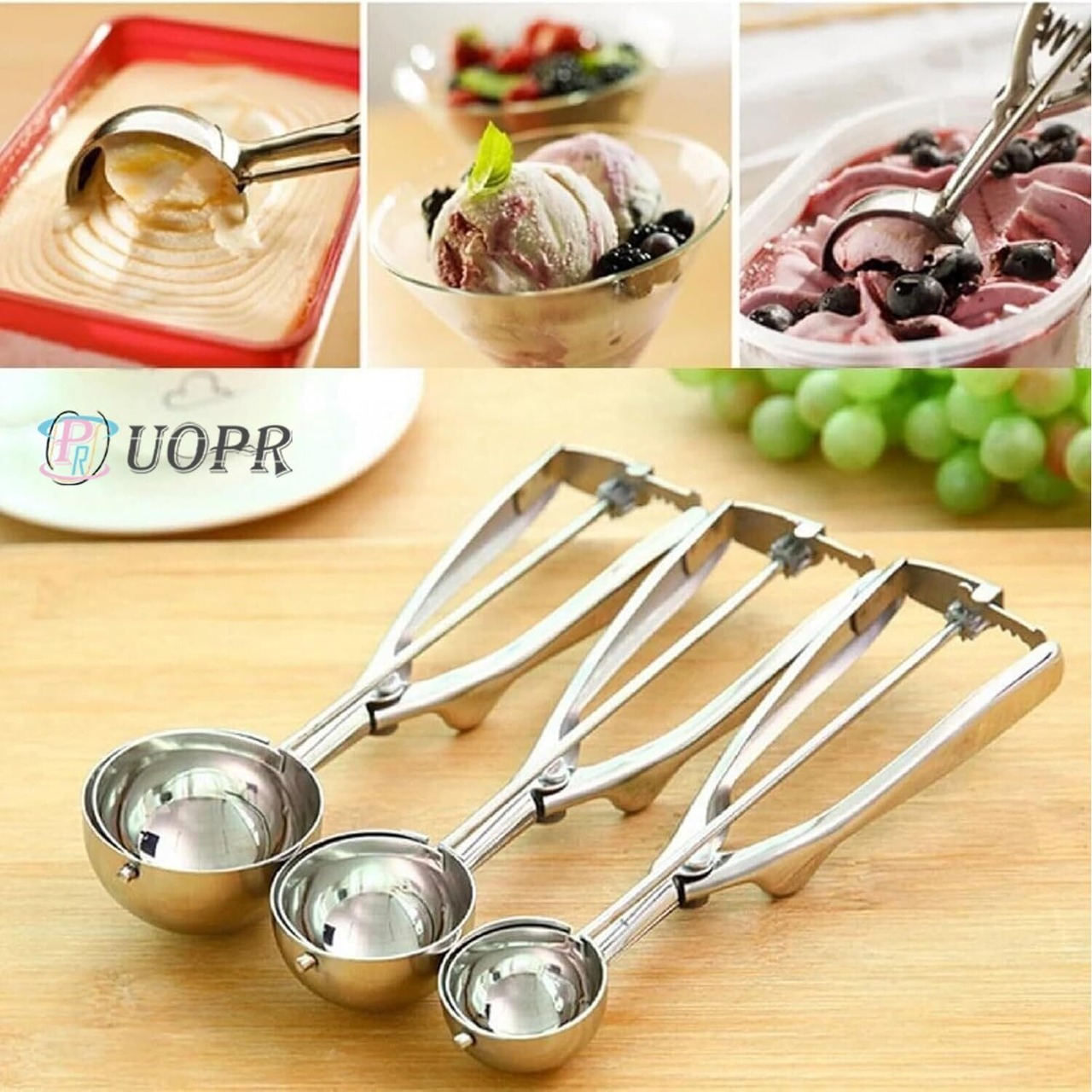 UOPR アイスクリームスプーン ステンレス素材 3個セット アイスクリームディッシャー アイスクリームスクープ シルバー マッシュポテトフードスプーン 清潔便利 すくうやつ 頑丈 便利 多機能 業務用 飲食店 料理用 キッチン用品