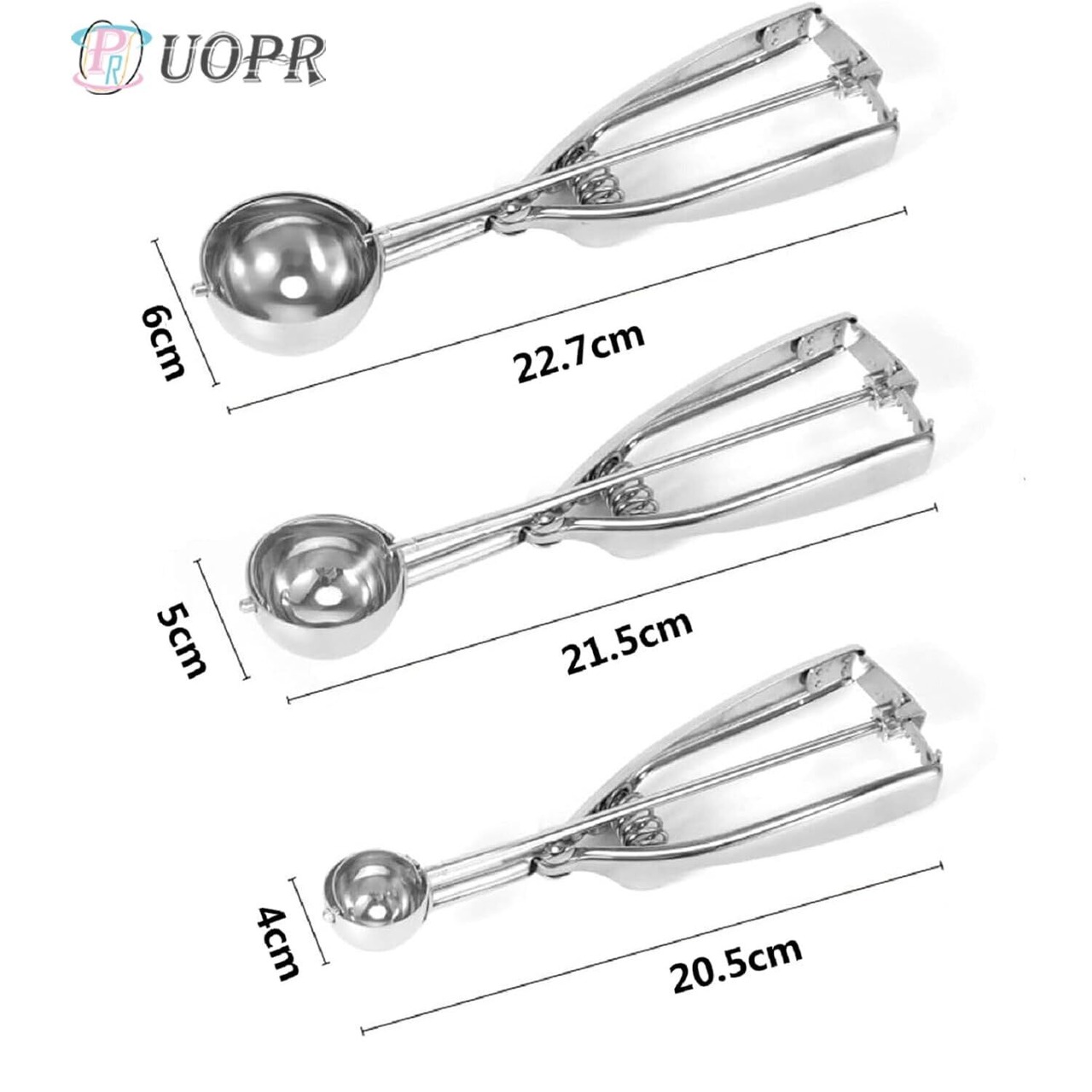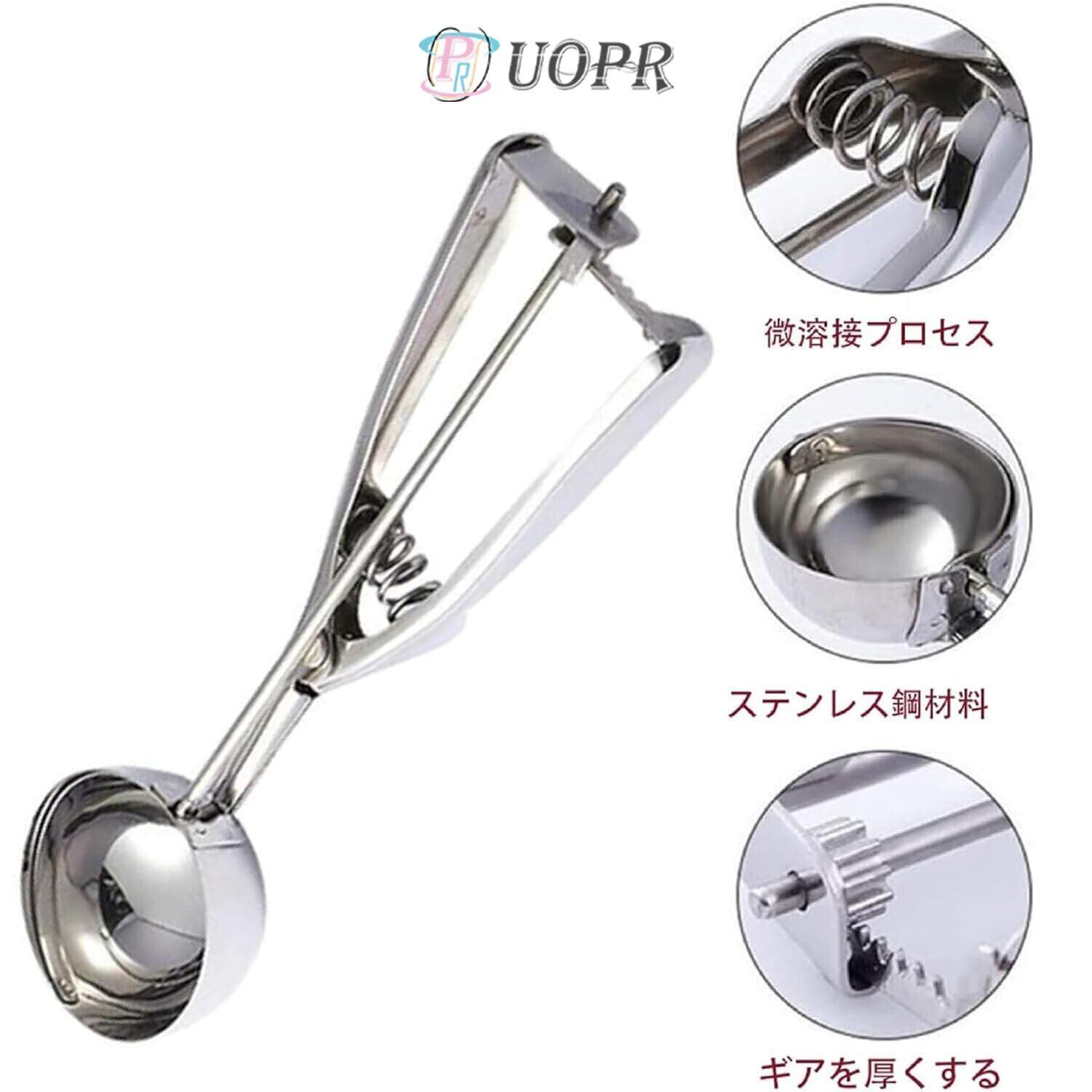 【素材】高級ステンレス鋼製、磨き、品質、スプリングデザイン、耐久性、厚みのある滑り止めハンドル、手触りの良さ、アイスクリームを楽しむための必需品、果物の掘り出しなどにも使用できます。