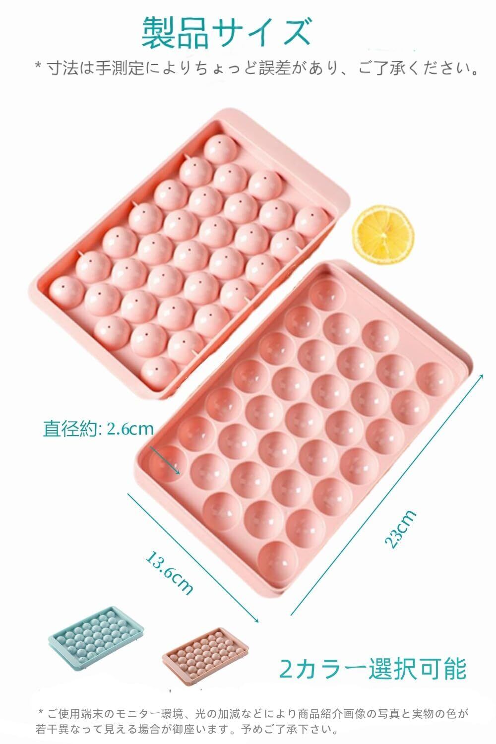 YFFSFDC 製氷皿 33個取りフタ付き製氷器丸氷 アイストレー 丸型 取り出しやすい 製氷機 アイスボール お菓子お茶 お酒 アイスクリーム穴付き 耐久性大容量2個入り (ライドブルー+ピンク)