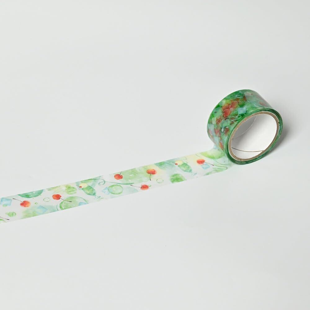 【マスキングテープ】 クリームソーダ <sticker 20mm×3m> 透明PET マステ シール ステッカー 緑 グリーン さくらんぼ 喫茶 飲み物 アイスクリーム 黄緑 | エヌビー社
