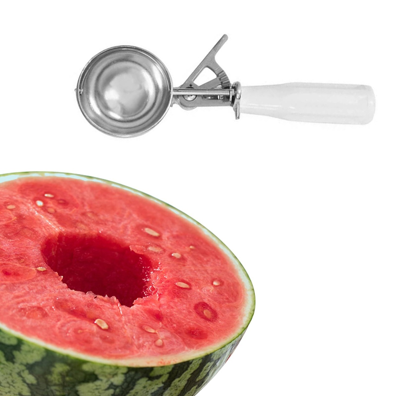 このディッシャーが、アイスクリームとポテトサラダの盛り付けに便利な秘密は、その独創的な設計にあります。まず、アイスクリームを取る部分は滑らかで丸みを帯びた形状になっており、冷たく固まったアイスクリームをもスムーズに掘り出せます。その先端はやや尖っており、アイスクリームに食べやすい大きさのボールを簡単に作れます。一度に適量を掬うことができるため、ケーキやグラスに飾る際にも美しく整然と盛り付けられます。