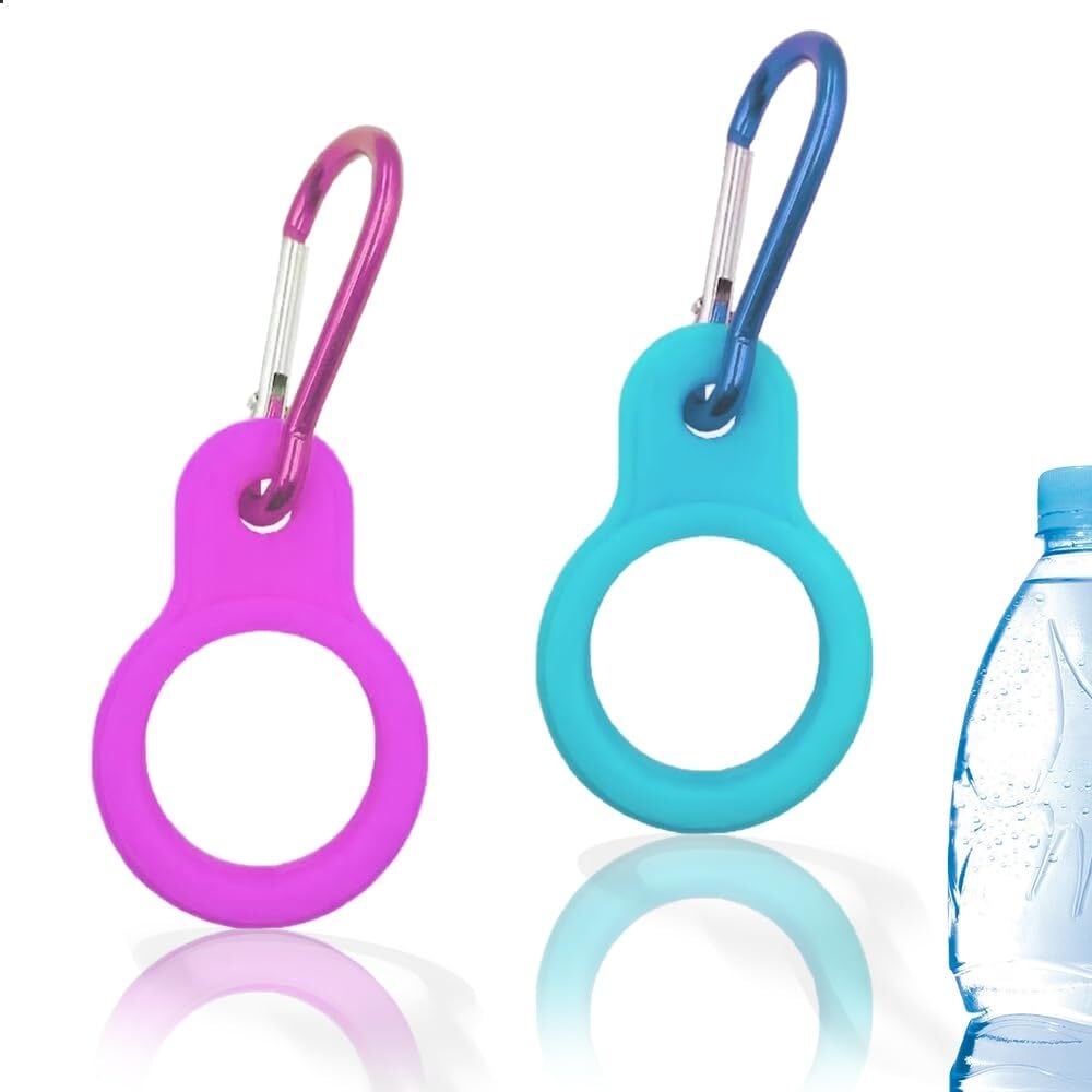 ペットボトルホルダー カラビナ付き 2個セット 携帯便利 アウトドア キャンプ 水分補給 ボトルフック ストラップ シリコーン バックパック ベルト対応 登山 ハイキング ブラツク 登山に 内径2.6CM (レッドとローズレッド)