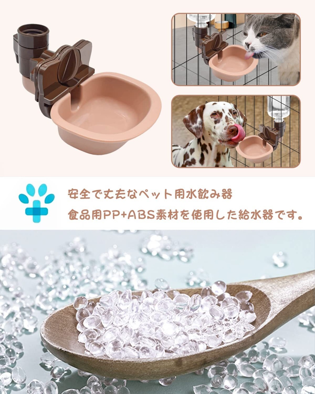 Beraypoo 犬 猫 水飲み器 給水器 ペットボトル 使用可能 ケージ 取付型 電源不要 お留守番対応 熱中症を防ぐ 転倒防止 漏れ防止 ペット用品 (ココア, 水飲み器)