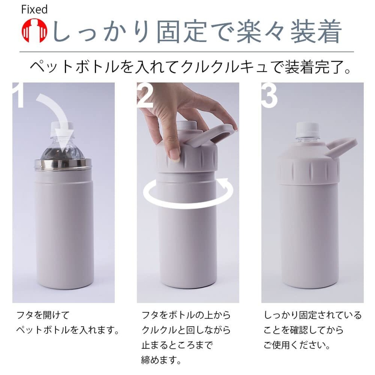 注意事項:●ボトルの形状によっては使用できない場合があります。●フタカバーの締めすぎにご注意ください。ペットボトルが破損する恐れがあります。●本体に直接飲み物を入れて使用しないでください。●ドライアイスは入れないでください。●冷凍庫に入れたり、電子レンジでの加熱はしないでください。●ご使用のスマートフォン、タブレットPC等のモニター環境によっては商品画像のお色と若干異なって見える場合があります。予めご了承ください。