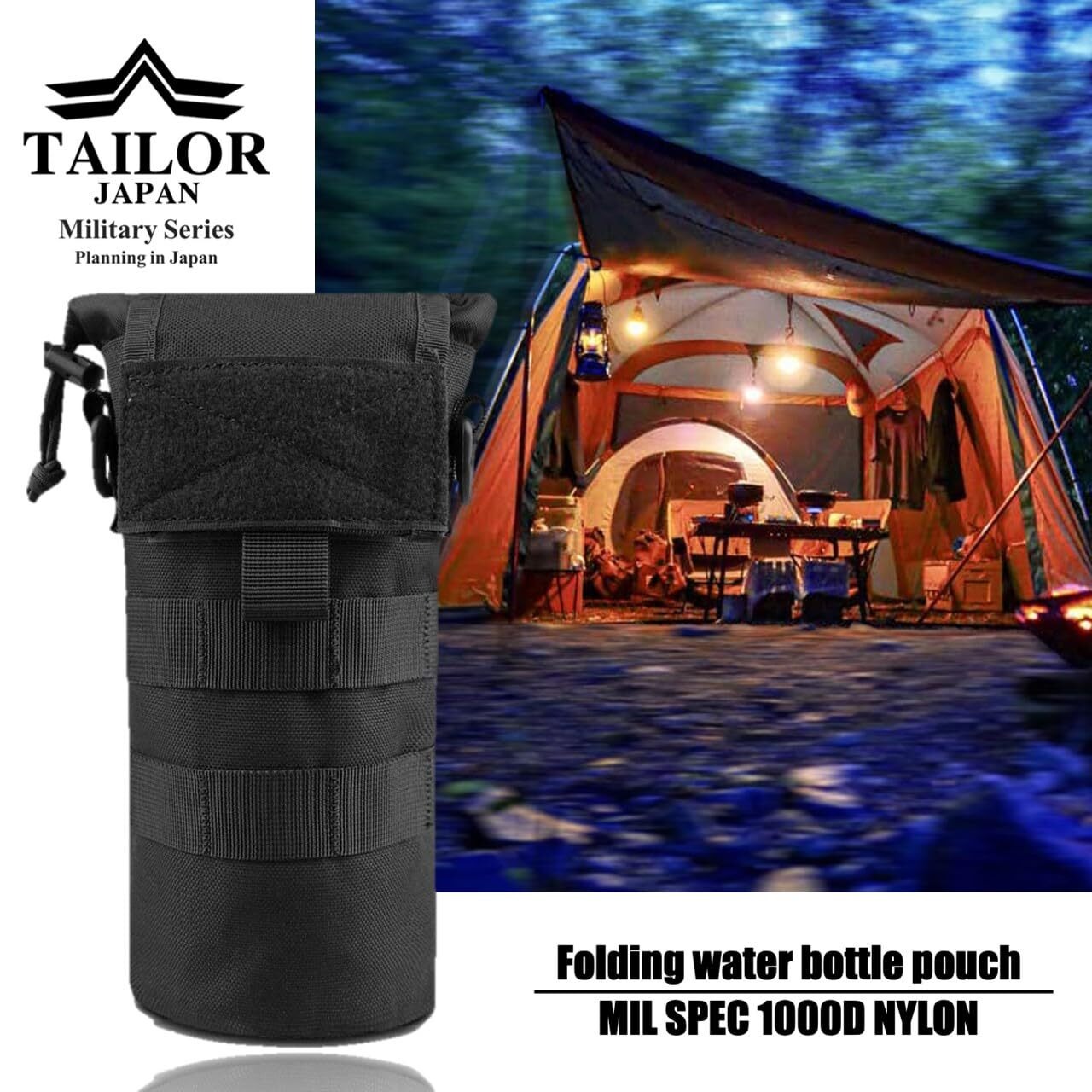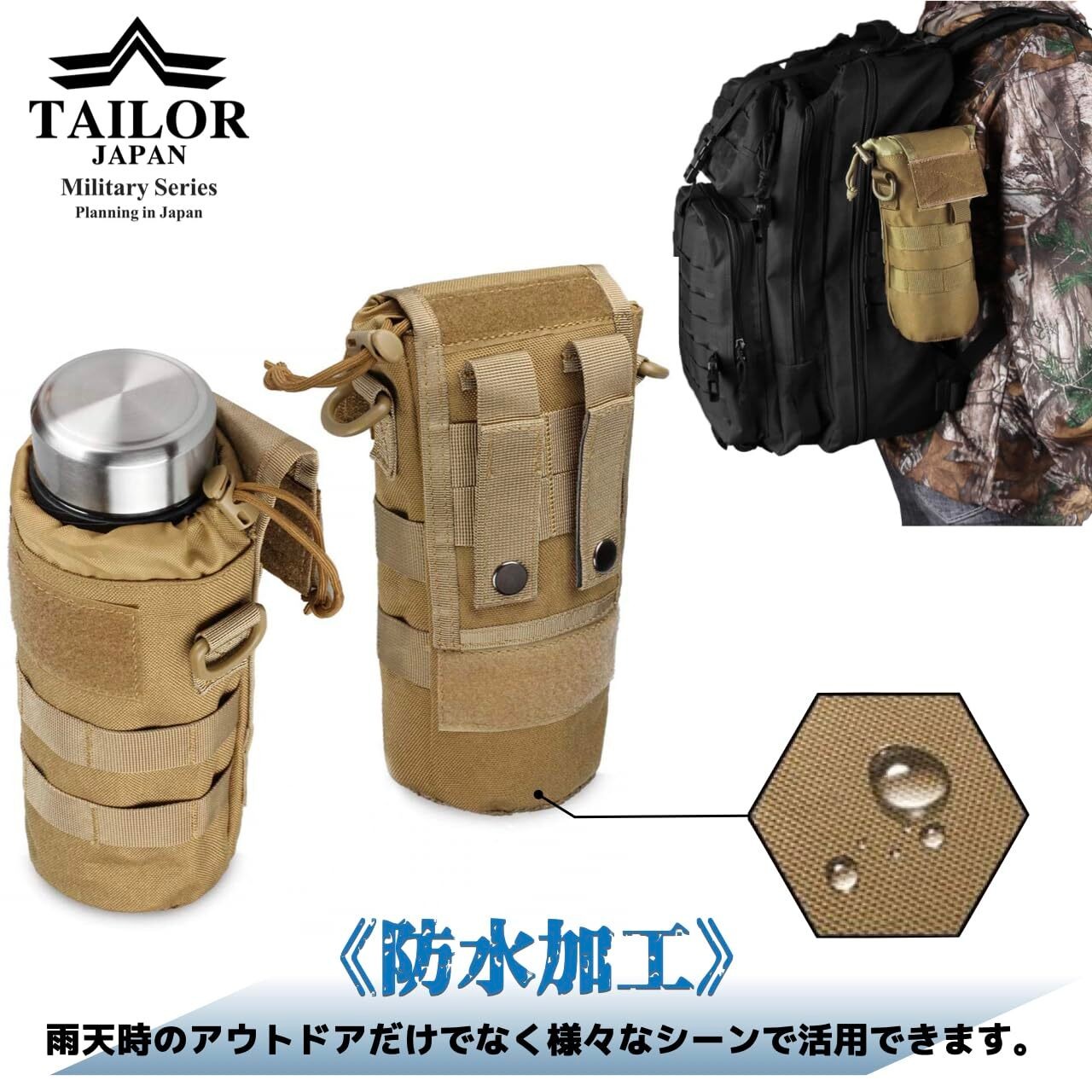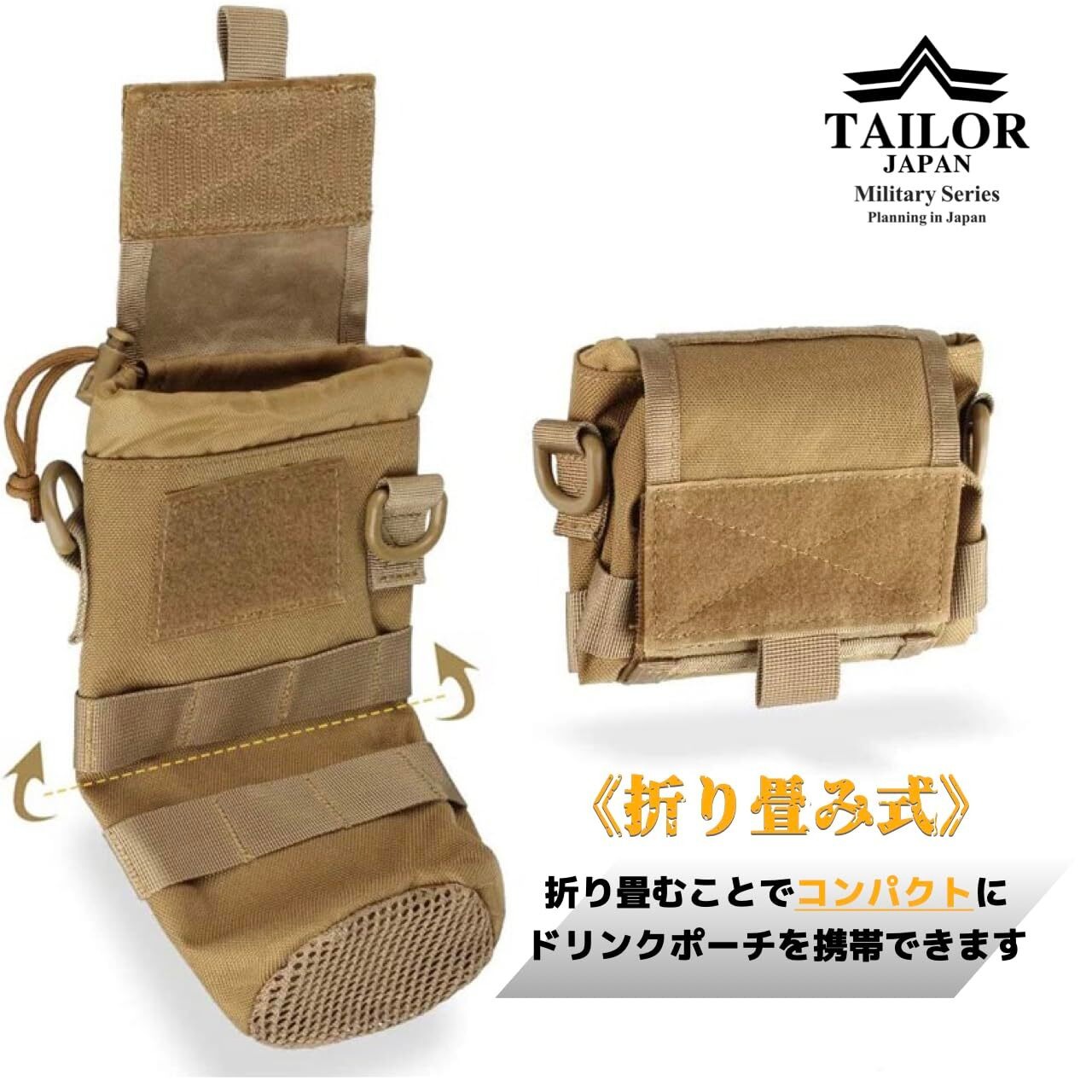 【TAILOR JAPAN】折り畳み 水筒ポーチ ペットボトルポーチ ドリンクホルダー ペットボトルホルダー モールシステム 防水 ナイロン 1000D