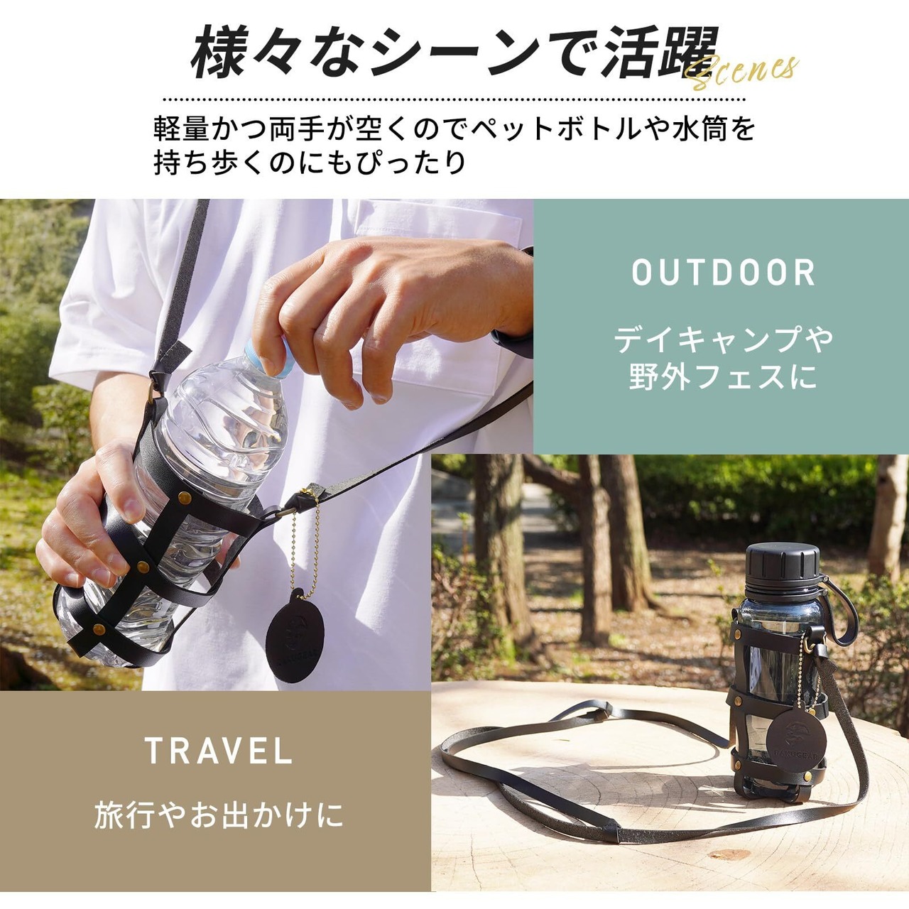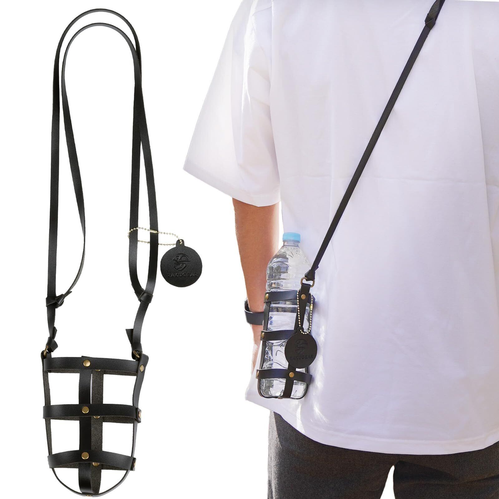 【デザイン性】 上質な黒の合成皮革ボトルホルダー、スタイリッシュなケージデザインで日常使いに最適