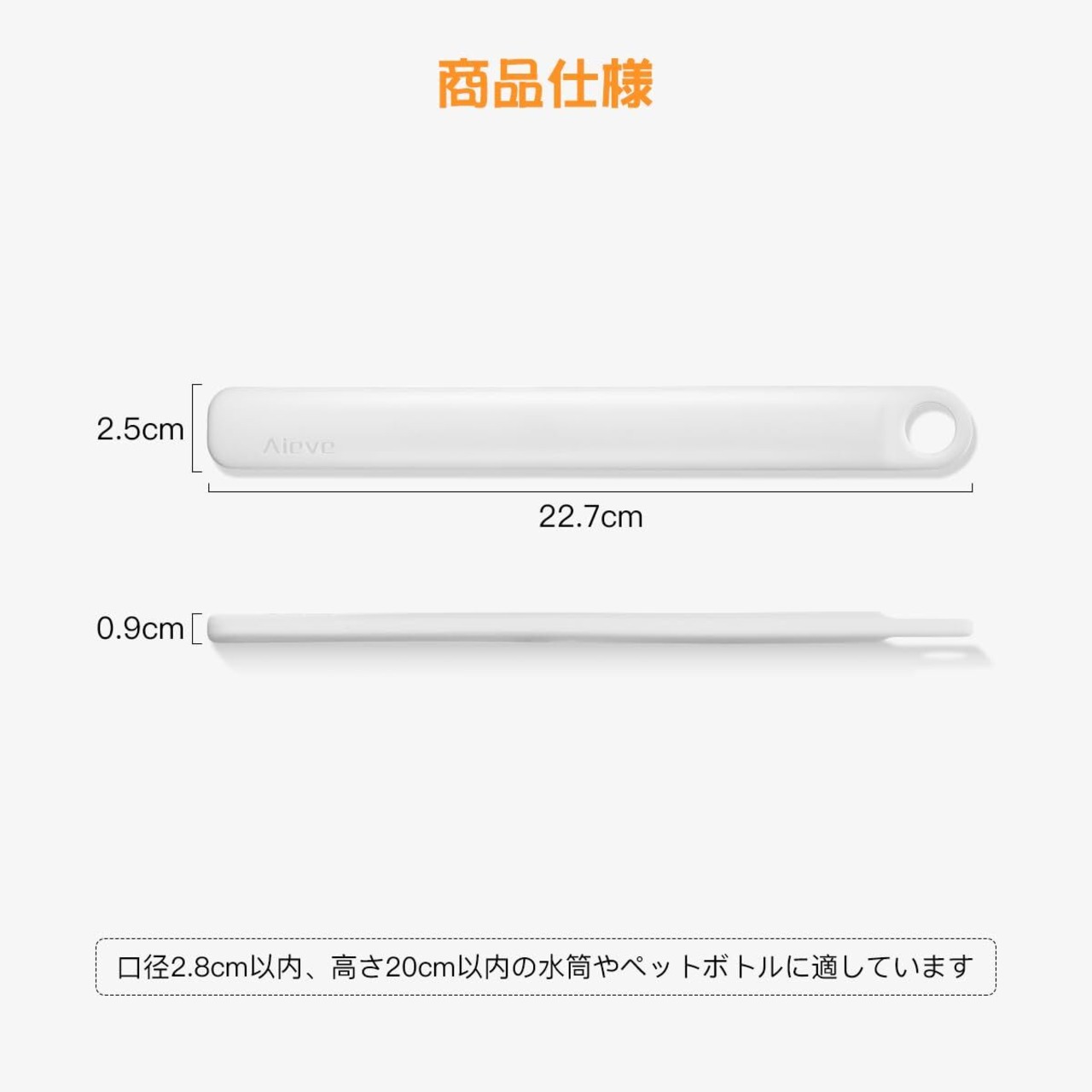 【商品仕様】適用範囲: 口径2.8cm以内、高さ20cm以内の水筒やペットボトルに適しています。商品サイズ: 長さ22.7cm X 幅2.5 cm X厚さ0.9cm。材質:吸水粒子を含んだプラスチック製