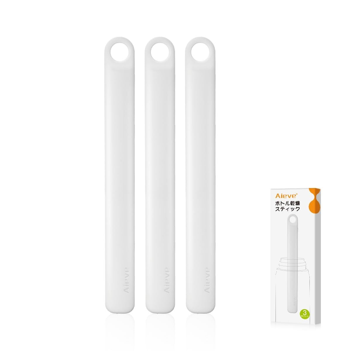 Aieve ボトル乾燥スティック 3本セット 水筒 乾かす 水筒 乾燥 スティック ペットボトル 水筒 水切り 速乾 除湿 フック穴付き ホワイト