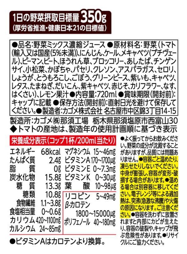 [セット品] カゴメ 野菜一日これ一杯 720ml x 6本 PET ペットボトル [専用段ボール箱]オリジナルティッシュ付