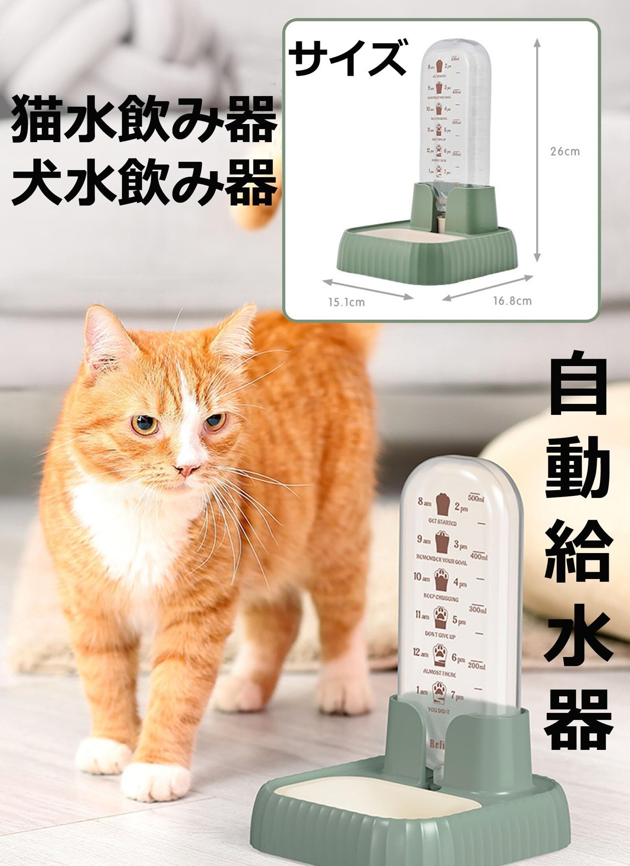 【犬猫 自動給水器】猫の水入れを新しく、電源不要、重力の原理を利用して、ペットが飲む水を一滴一滴新鮮にします。お水の補給はスムーズでサイフォンの原理を採用し、新鮮な水を確保できる。飲んだ後に水が出てくるので良いし、水の量も良い。