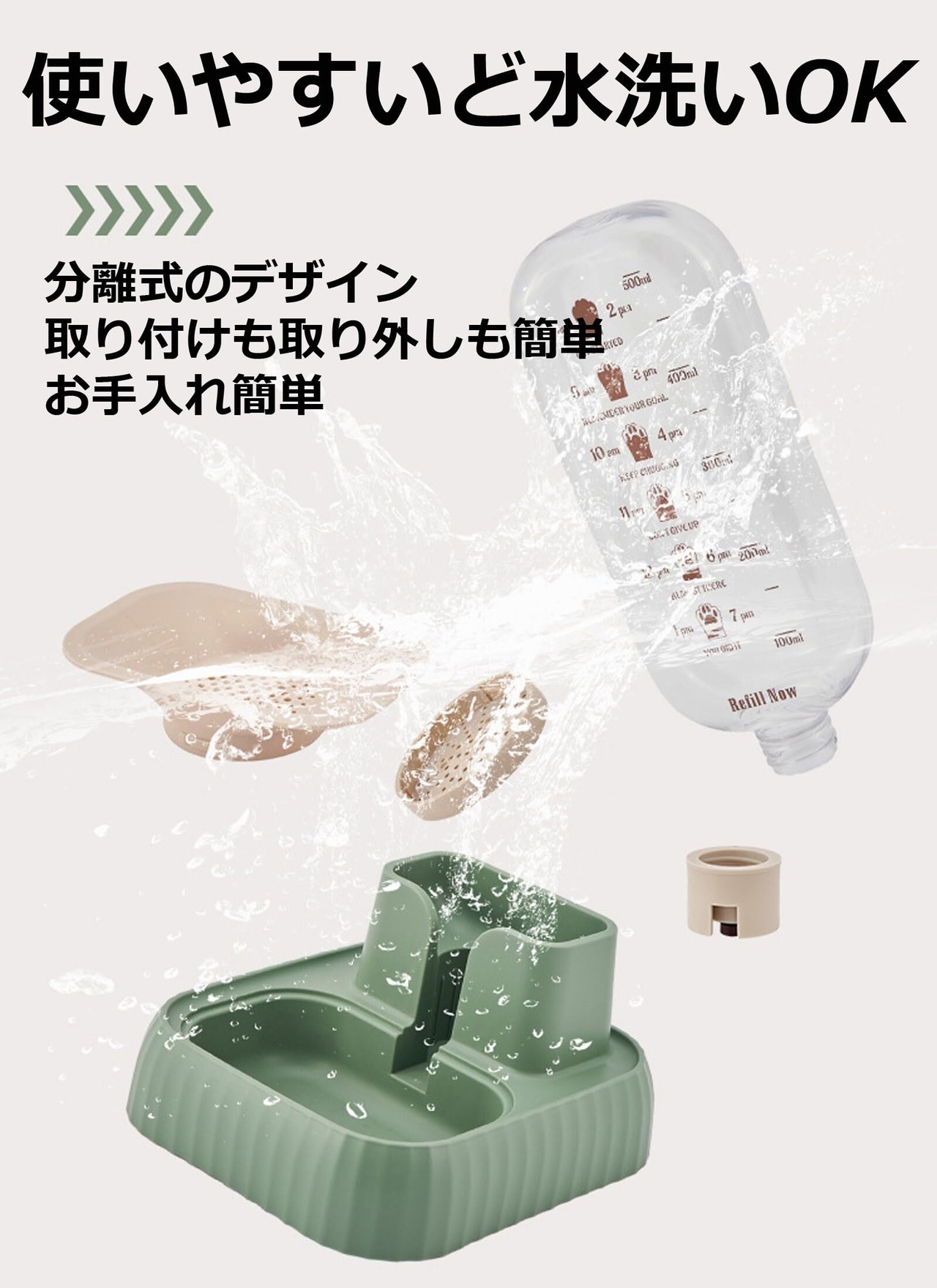 【使いやすい】使いやすさも洗いやすさもちょうどいい。水入れが可愛いしそれだけ持ち運べるのが掃除も楽だし、水も簡単に取り替えられて便利なのです。脱水症状になりやすい夏場でも、熱中症対策にも最適です。猫、犬、ウサギだけでなく、ハムスター、フェレット、モルモットなどの小動物にも使用できます。